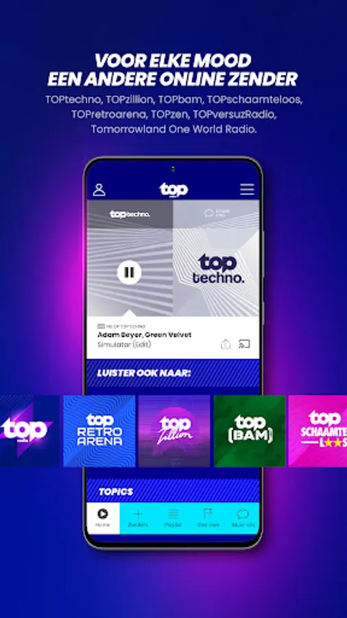 ✓ A different online channel for every mood: TOPtechno, TOPzillion, TOPbam, TOPshameless, TOPretroarena, TOPzen, TOPversuzRadio, Tomorrowland One World Radio.