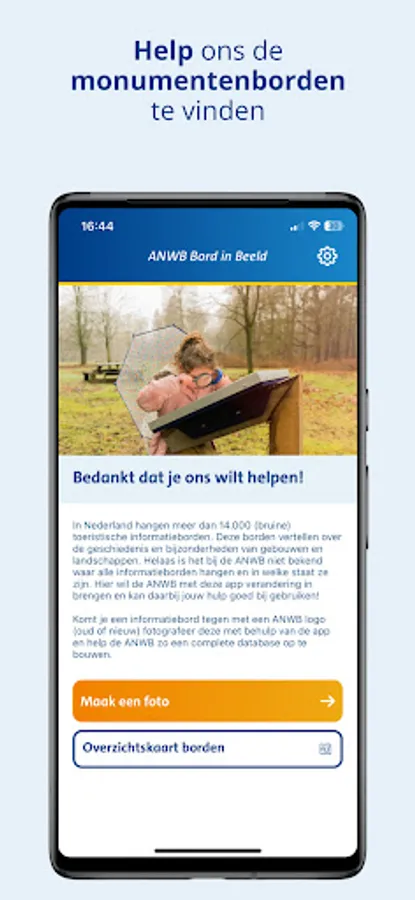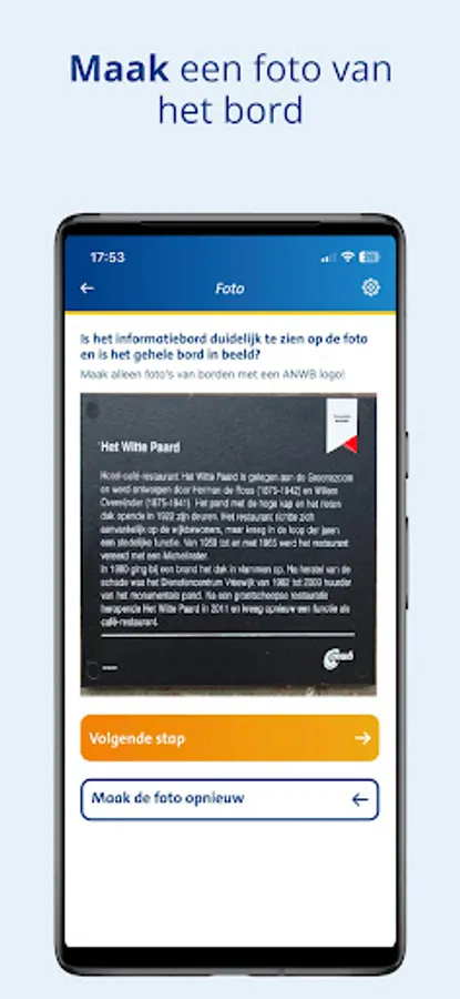 With the help of the ANWB board in Beeld app you can take photos of the boards and assess their physical condition.