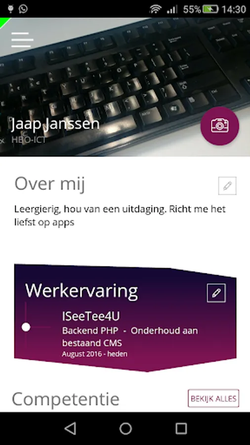 Because the student collects evidence of his practical progress, a portfolio is created. The student can decide for himself which pieces of evidence he wants to provide insight into. These can be supplemented with a self-presentation and recommendations from, for example, the employer. The profile page can be used by a student to request an exam or for job applications.