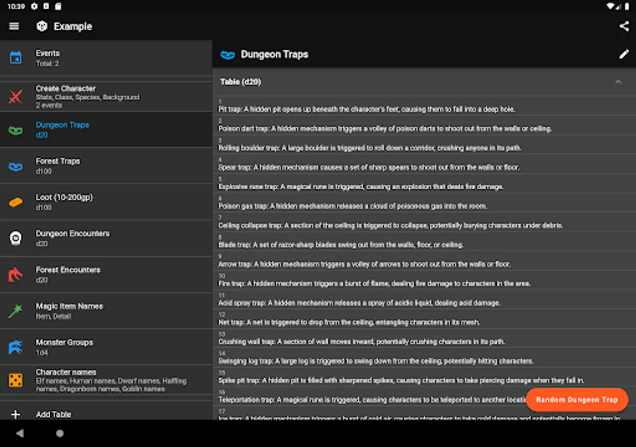 GMHelper helps Game Masters with reference material and generating random characters, loot, traps, encounters, names etc for TTRPGs and DnD games. All content is completely customizable.