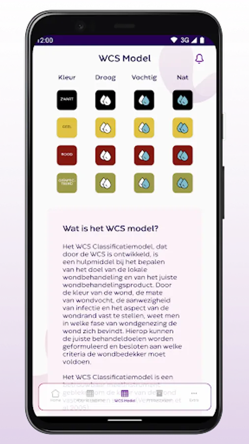 In addition to the most common indications, leg ulcers, pressure ulcers and skin tears, advice is also given based on the WCS model. This scientifically recognized wound model is widely used by wound experts.