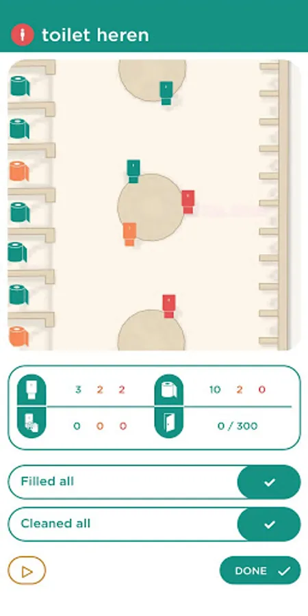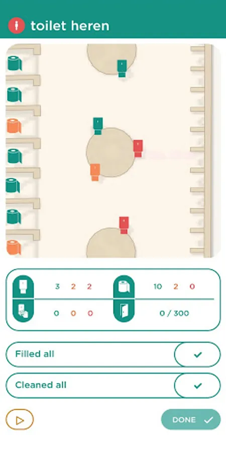 App that improves insight about your washroomstatus, easy to see which washrooms need filling and which ones need cleaning.