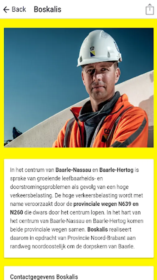 Boskalis Netherlands realizes Province Noord Brabant Baarle diversion project. Through this app informs Boskalis residents, businesses, road users and other stakeholders on the progress of work. Thus, in the app to read the latest news, his view the 3D visualizations, newsletters and documents can be seen in the planning. It is also possible to report, ask questions or to contact the area manager.