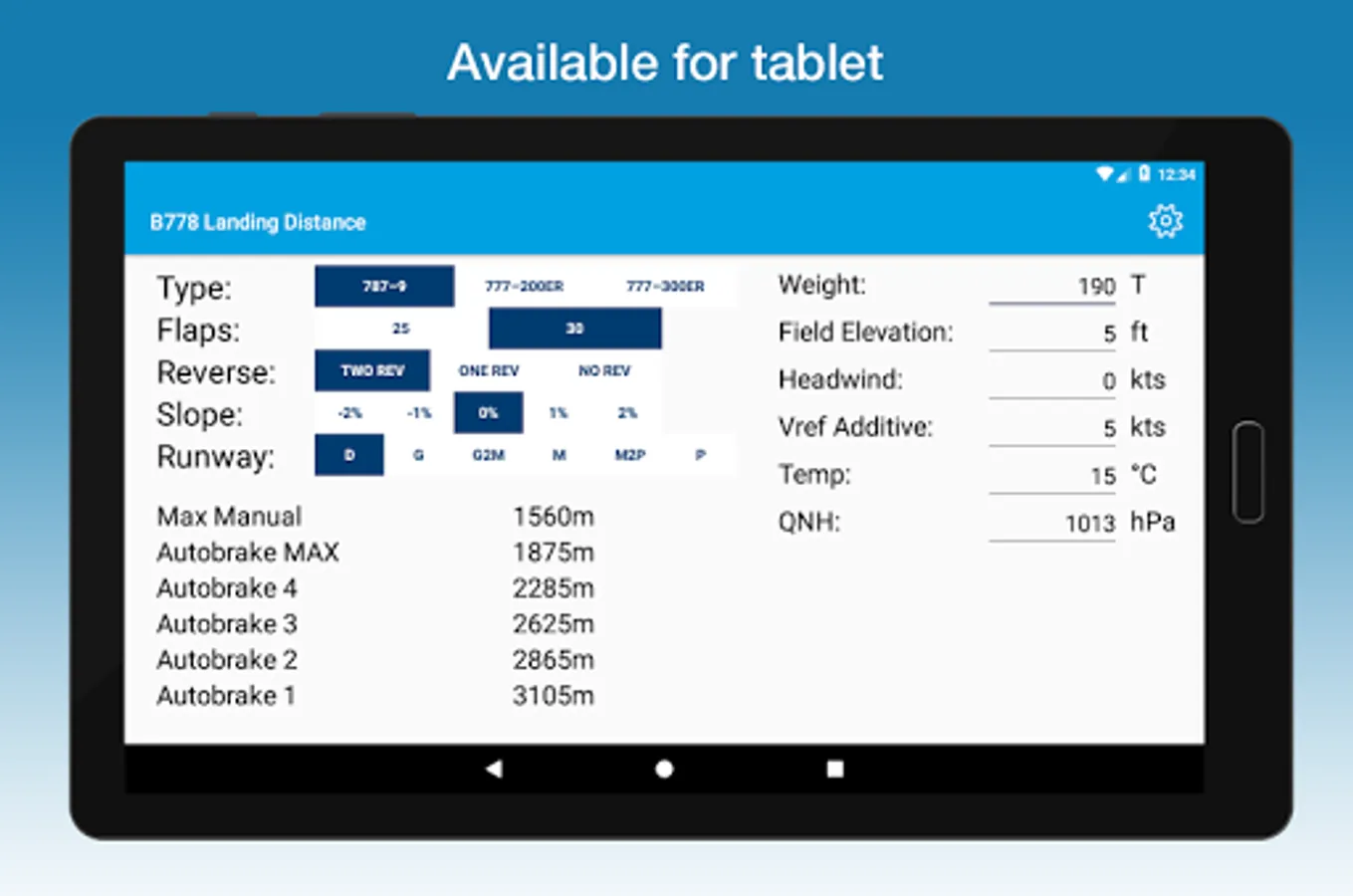 The app calculates pressure altitude to ensure the most accurate answer which is especially helpful on high elevation airports.