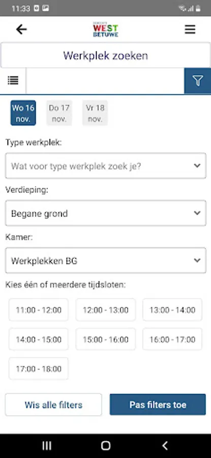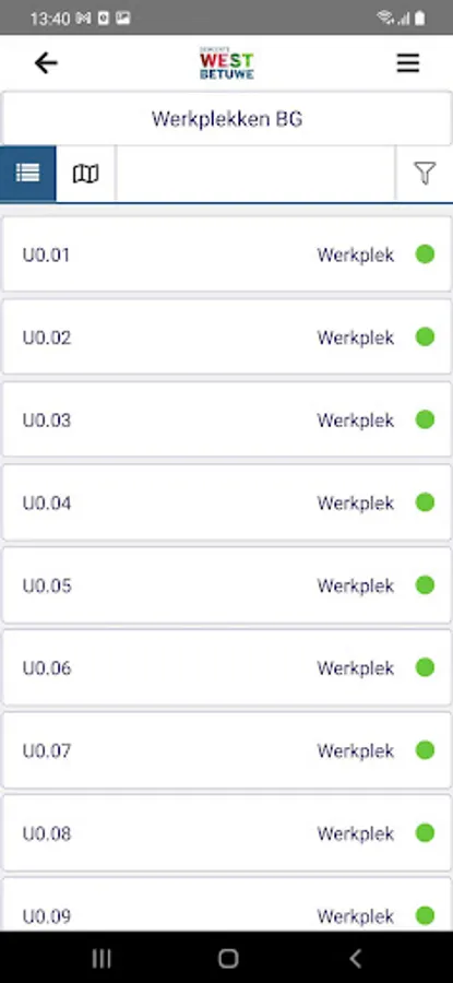 This app can be used by visitors and employees of the West Betuwe organization to reserve workplaces.