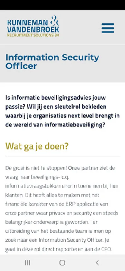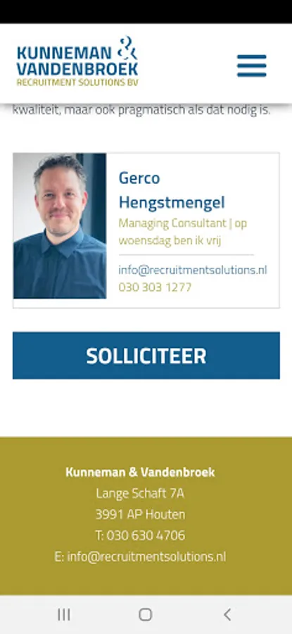 Kunneman & Vandenbroek houdt zich sinds 2000 bezig met het maken van de perfecte match tussen werknemer en werkgever. We geloven dat onze persoonlijke aanpak en passie de drijvende kracht is achter ons succes. Onze filosofie is dan ook niet voor niets: ‘Mensen werven mensen’ en ‘U vertelt, wij luisteren’.