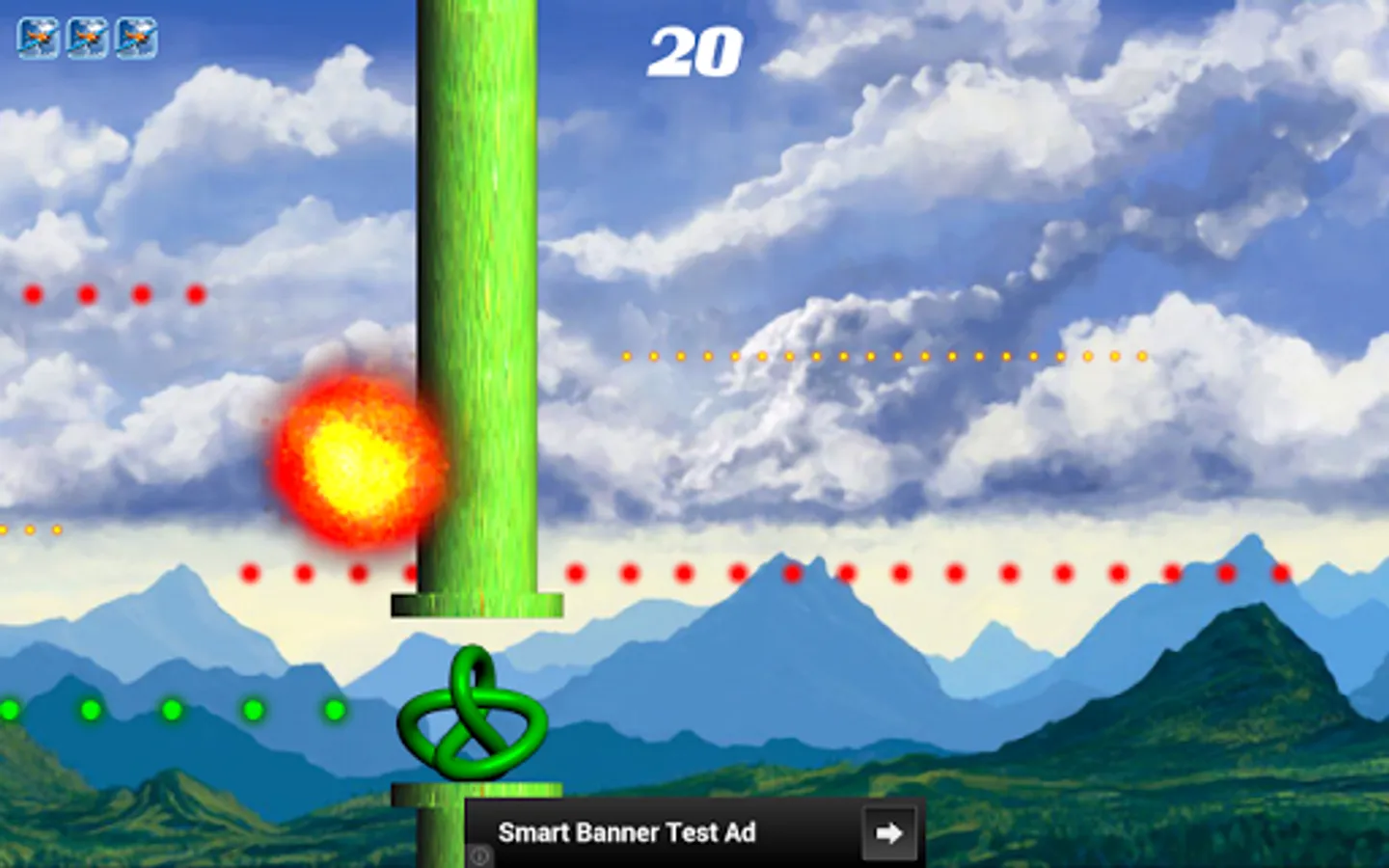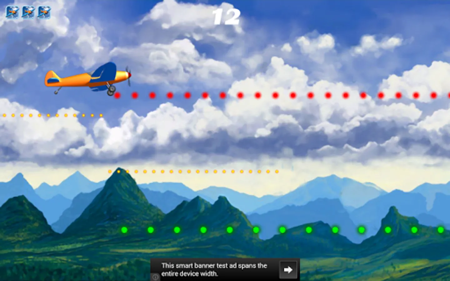 Tilt your device - or swipe across the screen - to move up, down, left and right across the levels. There are three levels going up and down (top, middle and bottom) and three depth levels to fly through (yellow, red and green which are respectively far, middle and nearby).