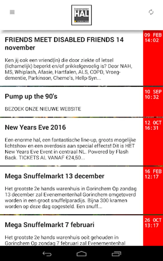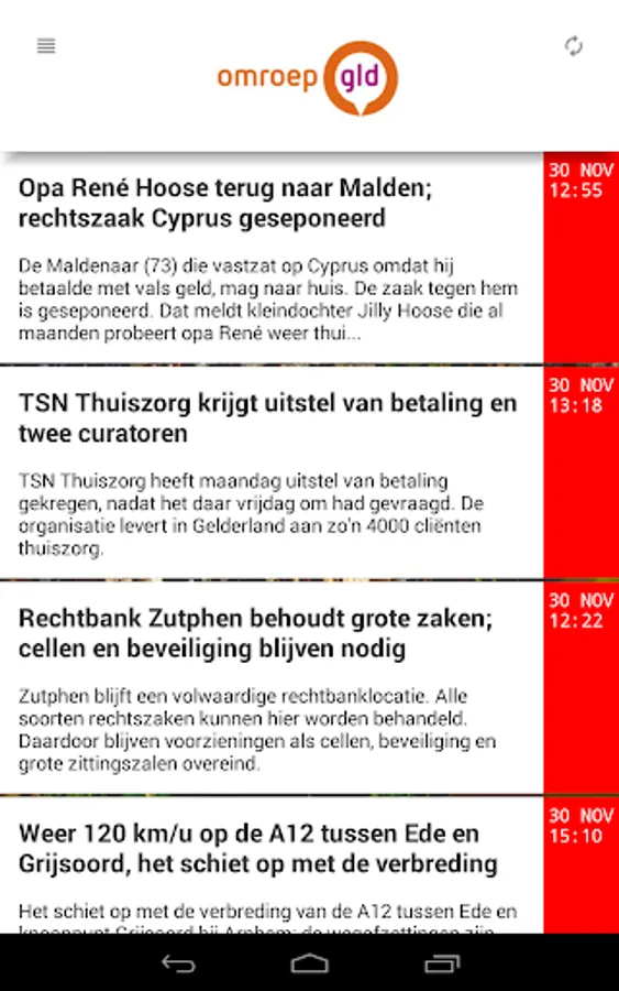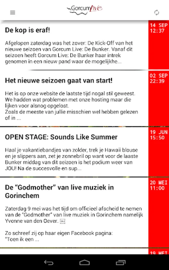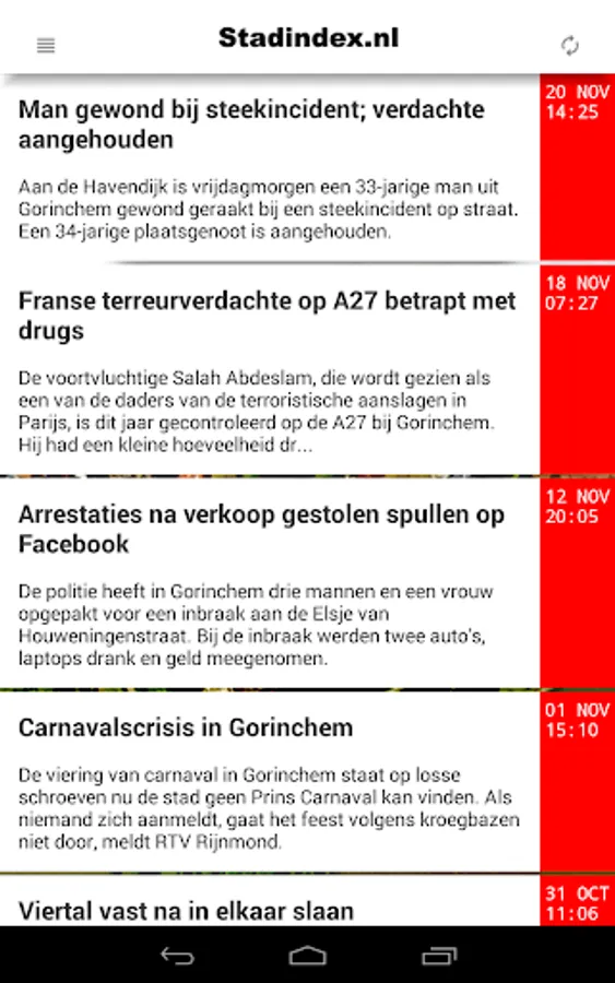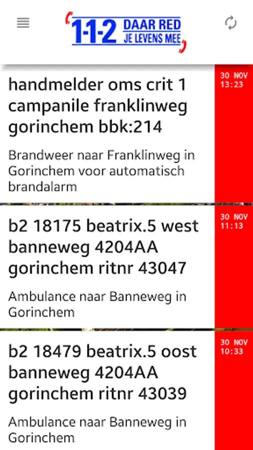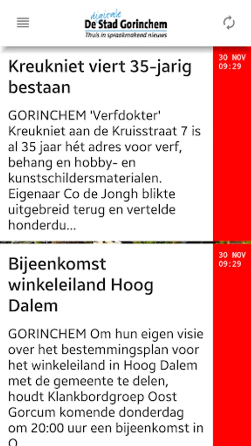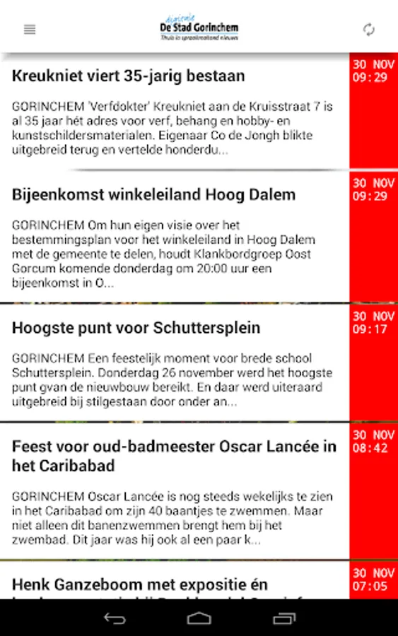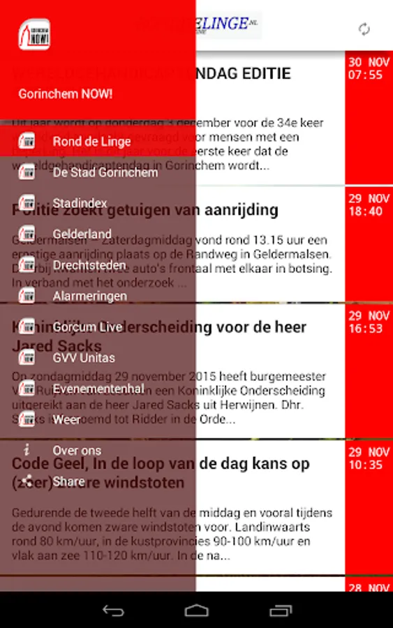 This app provides you the latest information about Gorinchem and surroundings. News items herein are collected and directly from City Gorinchem, Circa Linge, Gorcum Live, BER Unitas Evenementenhal Gorinchem, Alarms, Weather and more ....