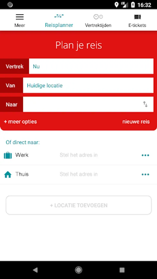 Planning a quick trip home or to work? From the home screen in the app you can easily plan a trip to your favorite locations. You can give the addresses their own name, such as 'home', 'office' or 'grandmother'. You can also easily click on your recent and frequently used locations.