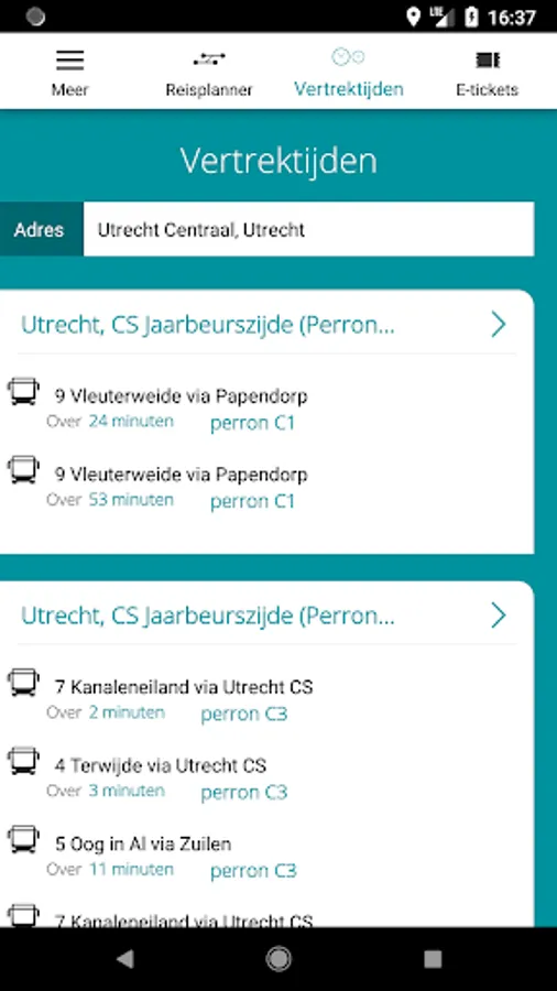 Want to know for sure what time your bus or train leaves? View the current departure times of stops and stations in the area, or from your most used stop. The app can show departure times of all stops and stations of all public transport companies in the Netherlands.