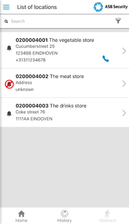 • Perform a walktest without the intervention of ASB Monitoring. Via the app you can immediately see when a zone is in alarm during the walktest. After the zone has been restored on the panel, the zone will also return to rest in the app.