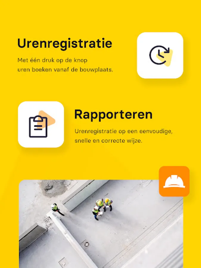 Book hours from the construction site via an app at the touch of a button. Via GPS, only the projects within a radius of a few kilometers are shown, so that the hours are directly on the correct project. The hours are booked on the project and therefore added up for the work in progress. The weekly schedule is automatically generated during the week. The data is available almost immediately on the administration. This helps to communicate in a timely manner and to make any corrections. For example, the app provides a correct weekly statement for the technician and better insight for the company management. Smart checks and notifications are built into the app to ensure that timesheets are submitted on time and that the administration also does its job with a smile. The great convenience for the mechanic promotes use. In this way we simply go digital and we have fewer worries.