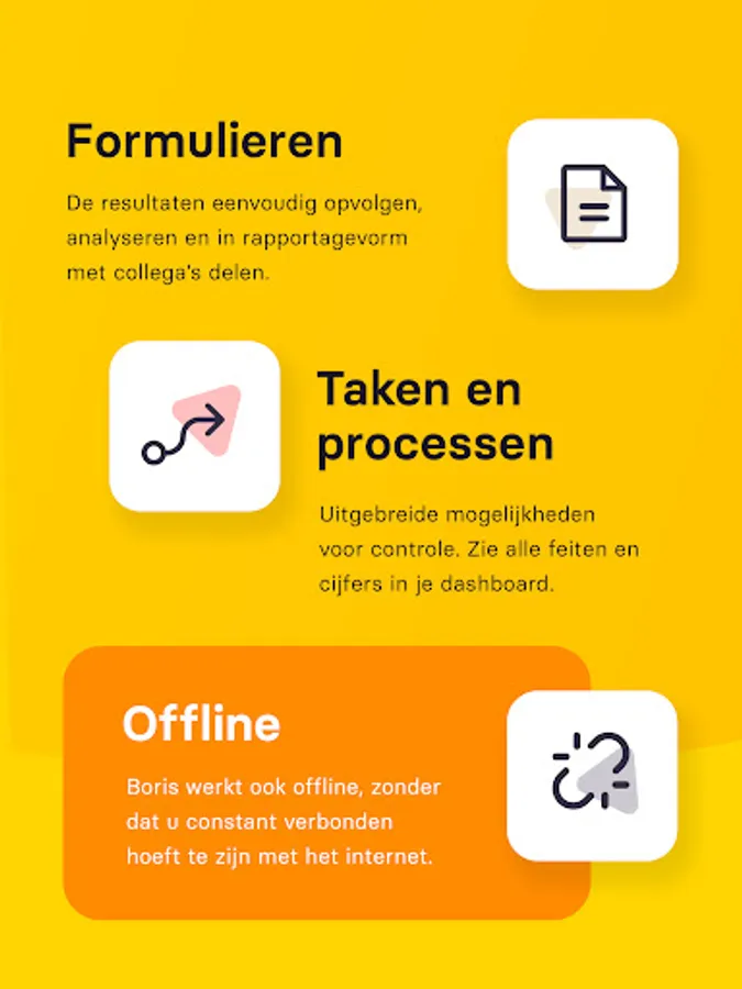 The photo module contributes to the burden of proof for the execution of work, helps with documentation and transfer and is the basis for complying with the quality assurance law. For both new construction and renovation, a photo is added directly to the file with a single push of a button. The photo is saved in a structured way. The following tags are given: project number, house/building number, the category and a comment. The photos are immediately available to the office via the BORIS Backoffice portal. In this way, transfer to the client can be ensured. It is also possible to make adjustments earlier when following the work, because the burden of proof is immediately and up-to-date via photos. This also minimizes the delivery points.