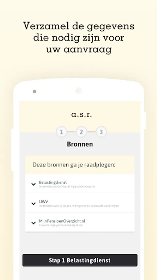 The a.s.r. Accelerator Request is an app from a.s.r. This allows you to quickly and securely share the information you need for your mortgage application with a.s.r. No more hassle to collect all documents. The only thing you need is this app and your login details for DigiD.