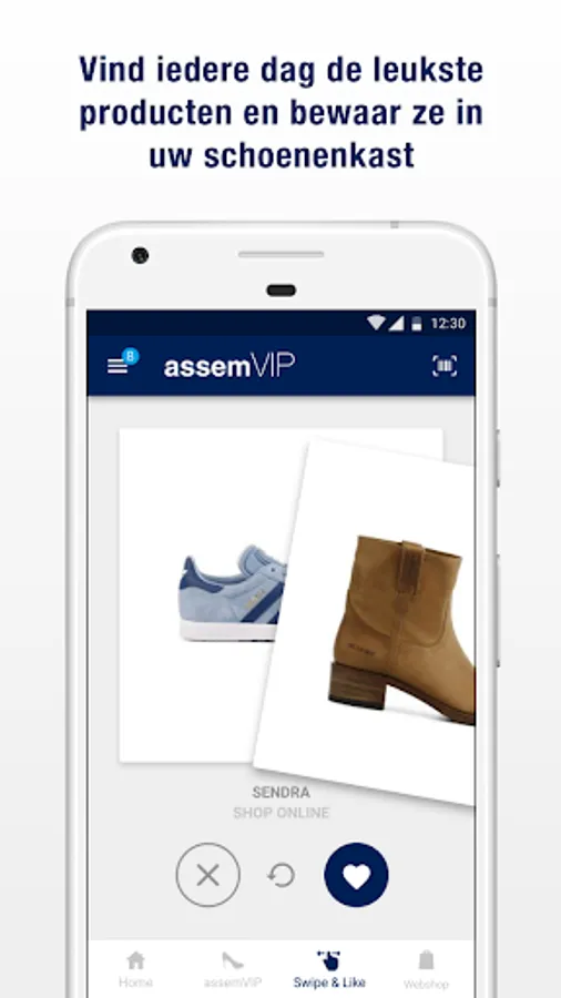 Discover the Van den Assem loyalty app full of shoe inspiration, spectacular benefits and exclusive privileges. With the app you have continuous access to the latest shoe collections and your Van den Assem account, including your favorite items, your purchases, order status and your personal vouchers.