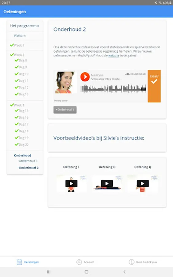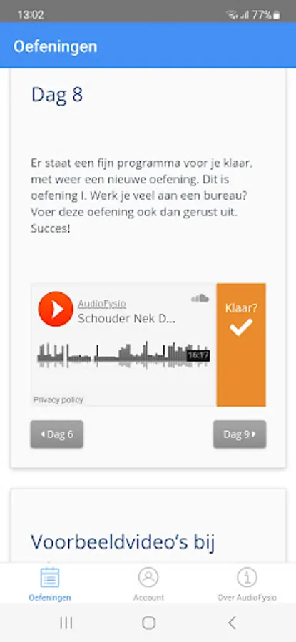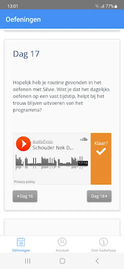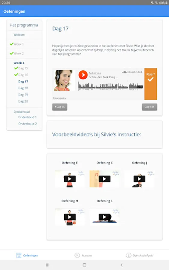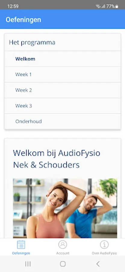 Use this app for more flexibility in your neck and shoulders. AudioFysio specializes in offering pleasant, guided exercises for at home. More than 100,000 people already practice with AudioFysio.