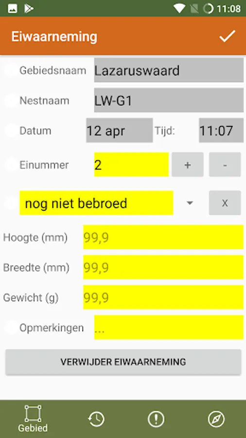 In order to determine the causes of the trend (progress or decline) of a population, it is important to clearly map the breeding success. To make the collection of breeding success data of various bird species easier, the AviNest App has been developed. This App allows the input of breeding success data in the field in a simple way. You can keep a good overview of your own imported nests in different areas. The App can automatically calculate when the chicks will come out of the egg, around which date you could ring the boy and the expected date that the youngsters are flying. You can see this per litter and area in a clear overview. The data can be easily uploaded to the Sovon database Nest Map, which allows the data to be used by the organization for large-scale research.