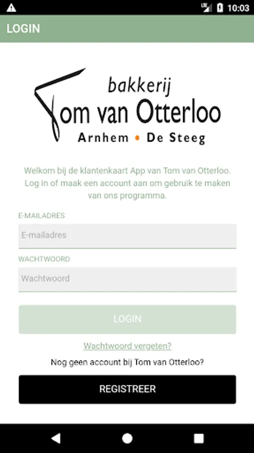 With the Tom van Otterloo App you have an edge. This saves you benefit and uses special offers for our loyalty cardholders. If you do not have a card yet, you can request one with this App by completing the registration. If you already have a card, and you want to link that card to this App, use the same e-mail address that you provided when you received the card. This is the e-mail address on which you receive emails from us from time to time. The password you need to log in can be (re) requested by clicking [forgot password]. With the Tom van Otterloo App your advantage starts immediately.