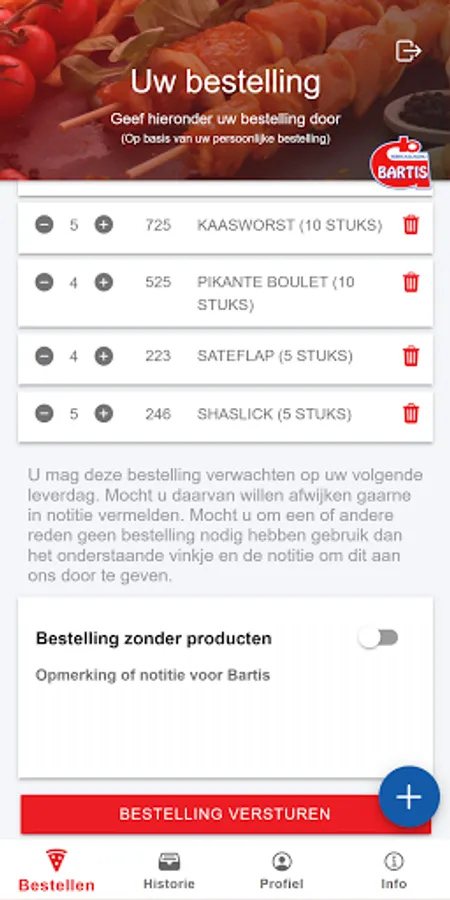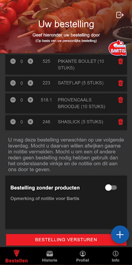 Bartis Horecaslagerij would like to relieve their customers by making the ordering process as quick and easy as possible. This app was developed for this. Because customers often repeat orders, their fixed order is presented as standard, after which they only have to check it and adjust it where necessary. The order is then forwarded at the touch of a button.