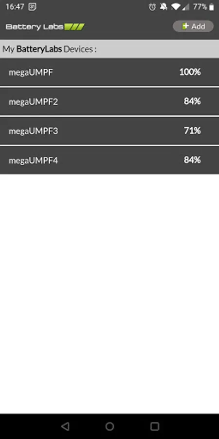 The application runs on devices supporting BLE (bluetooth 4.2) and is able to display all SOC's of your batteries at the same time in one screen, making it suitable for e.g. fleet owners. Connecting to a particular battery will make the battery LED's flash so you can easily distinguish the particular battery.