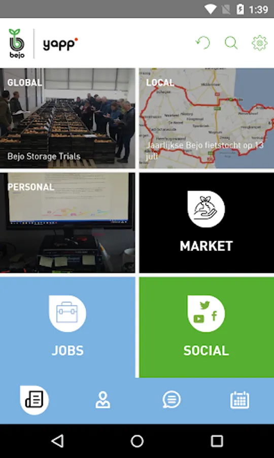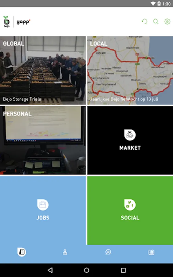 Read all internal Bejo news in Yapp! Yapp connects 1700 Bejo colleagues from over 100 countries. The app is divided in different categories: Global, Local, Personal, Market, Jobs and Other news. The category Personal and Other offers all users the possibility to share their experiences within just a few clicks – including pictures. Furthermore, Yapp offers the option to find colleagues and has a calendar tool. Yapp gives users a lot of options to customize what kind of news they want to receive. Yapp is available for several devices and can be used on any time, any place and anywhere.