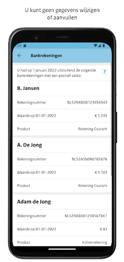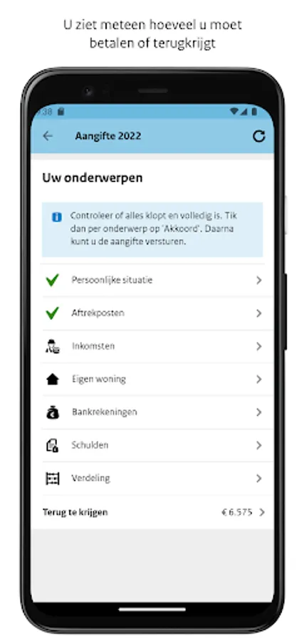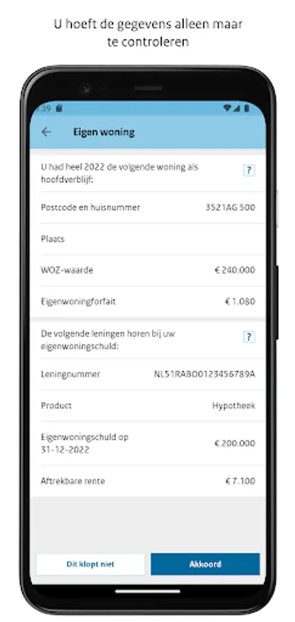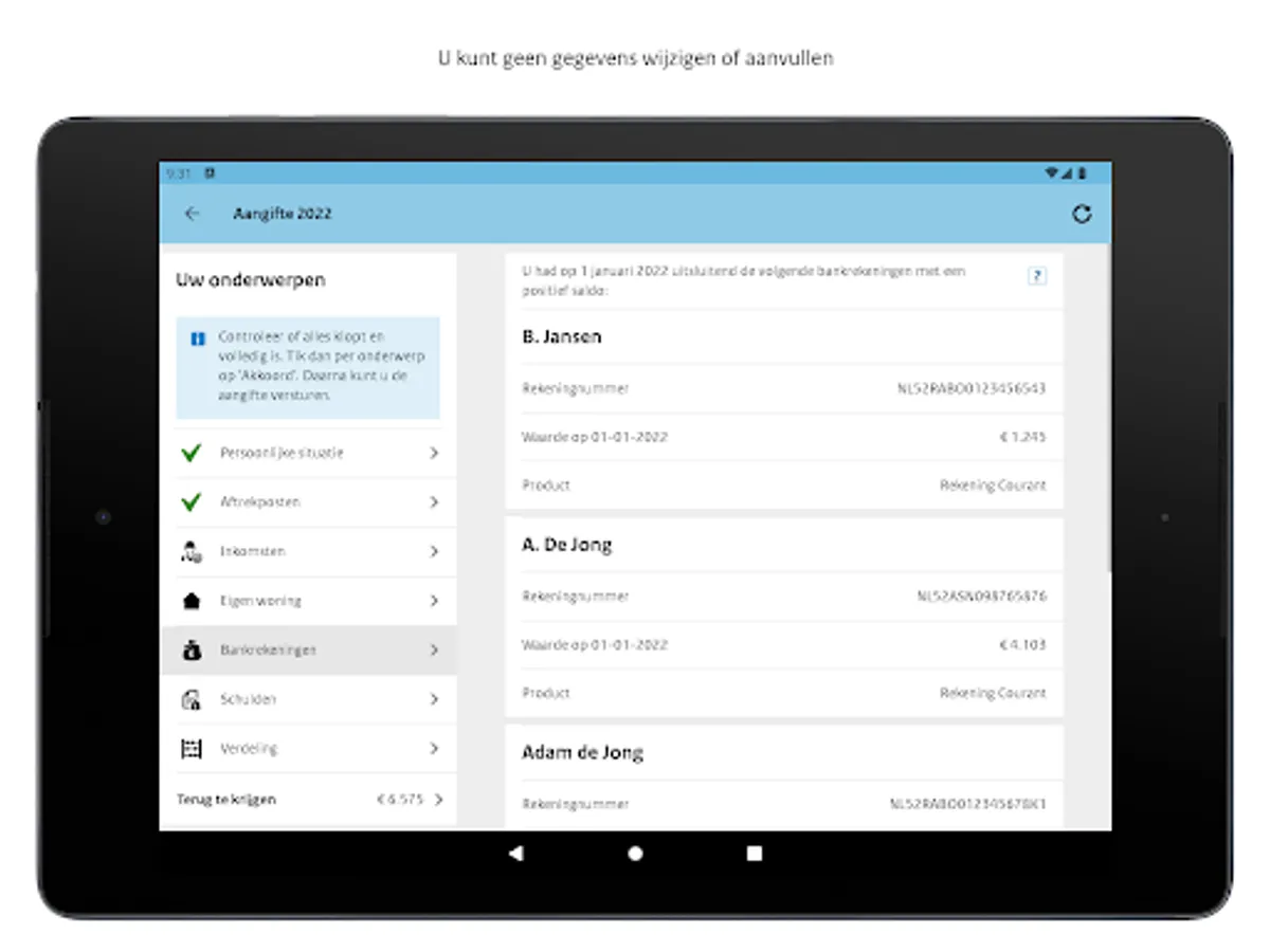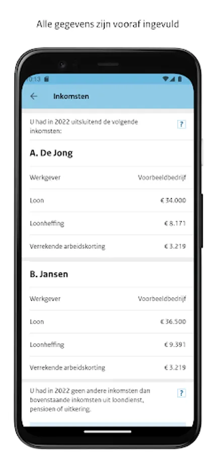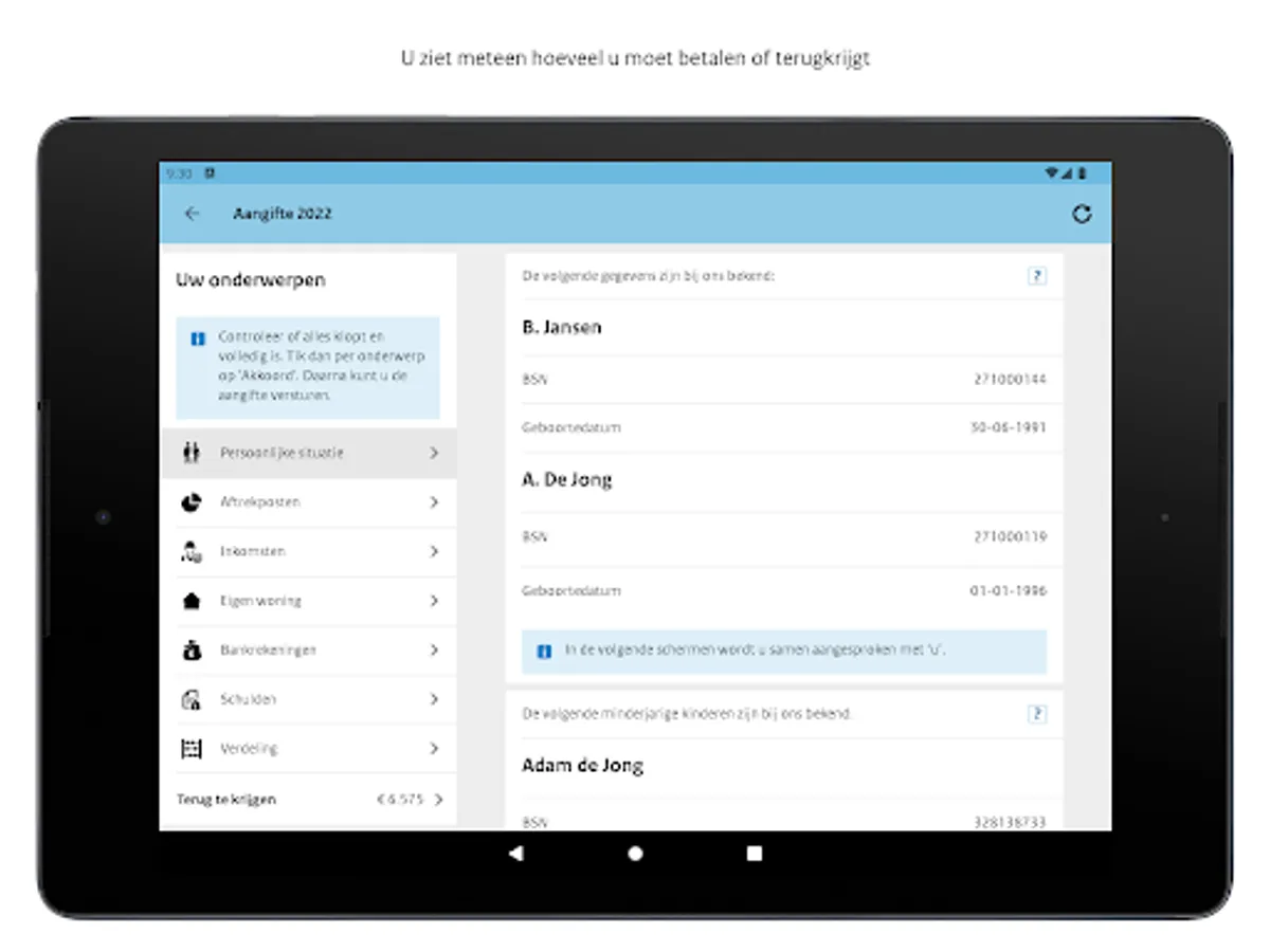 Can't use the app? Then complete our online declaration. For more information or to file a tax return directly, go to belastingdienst.nl/aangifte.