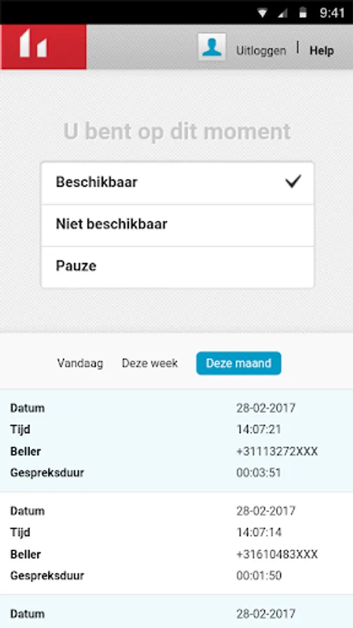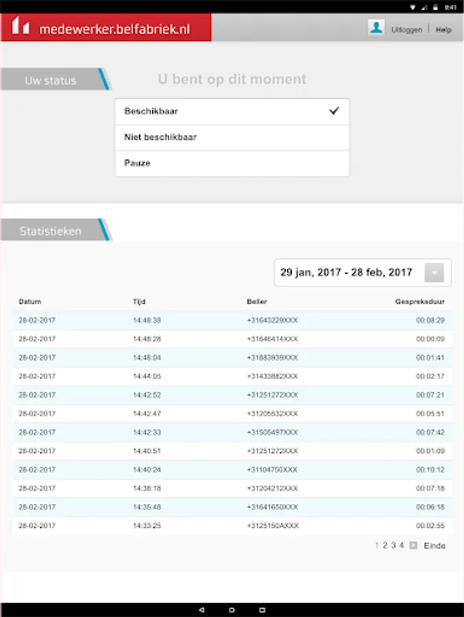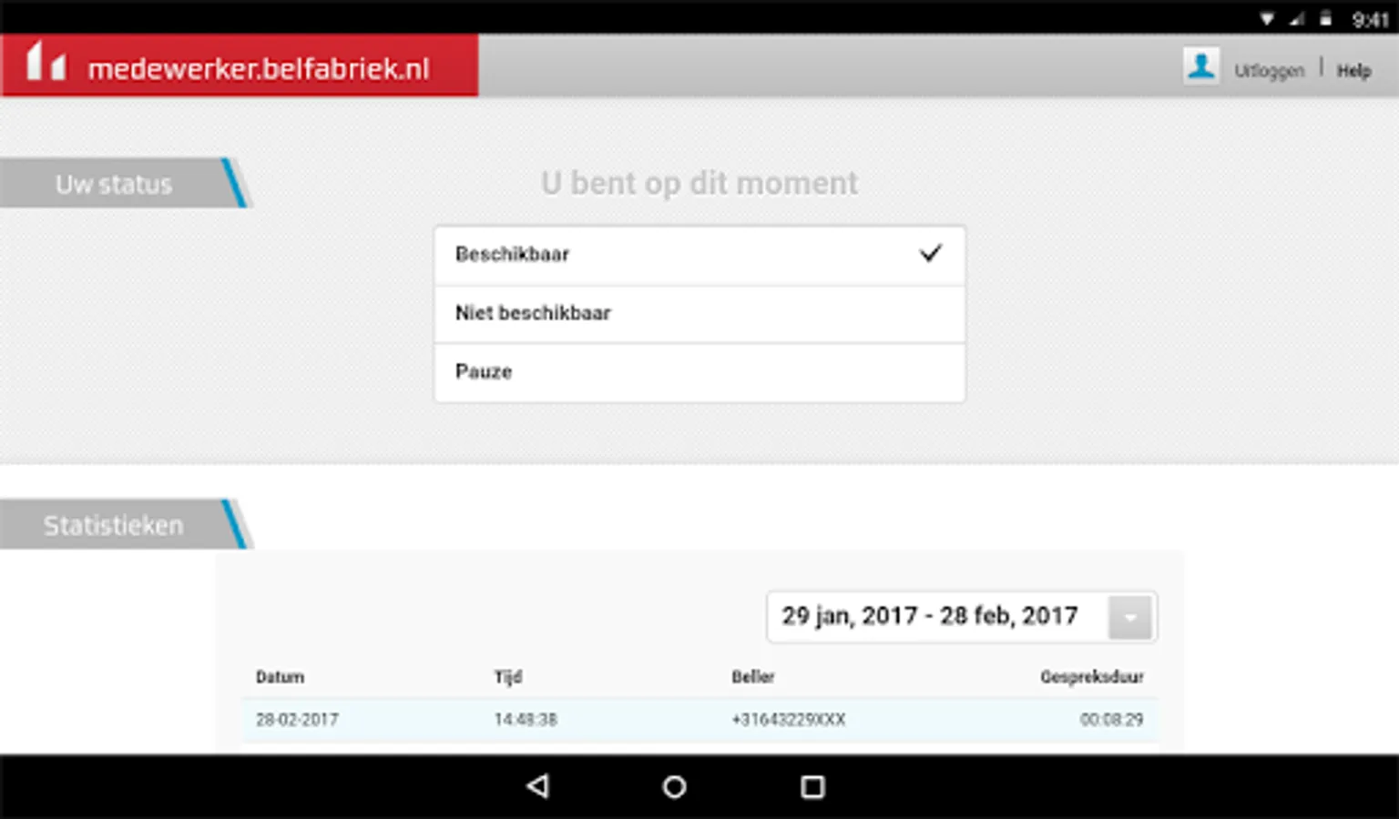 The Belfabriek Call Center app gives telephone employees a convenient and fast way to manage their availability for answering incoming calls. They can also view their own call statistics within the Call Center app. For example, telephone call center employees always have an overview of the number and duration of the calls handled.