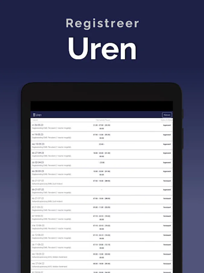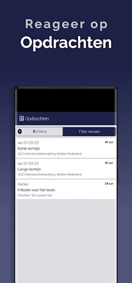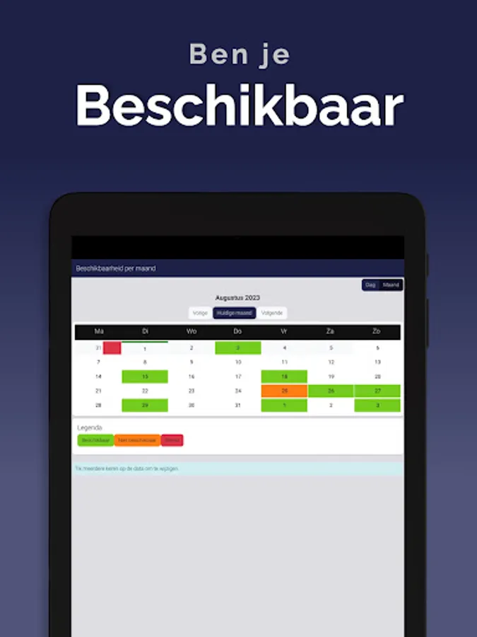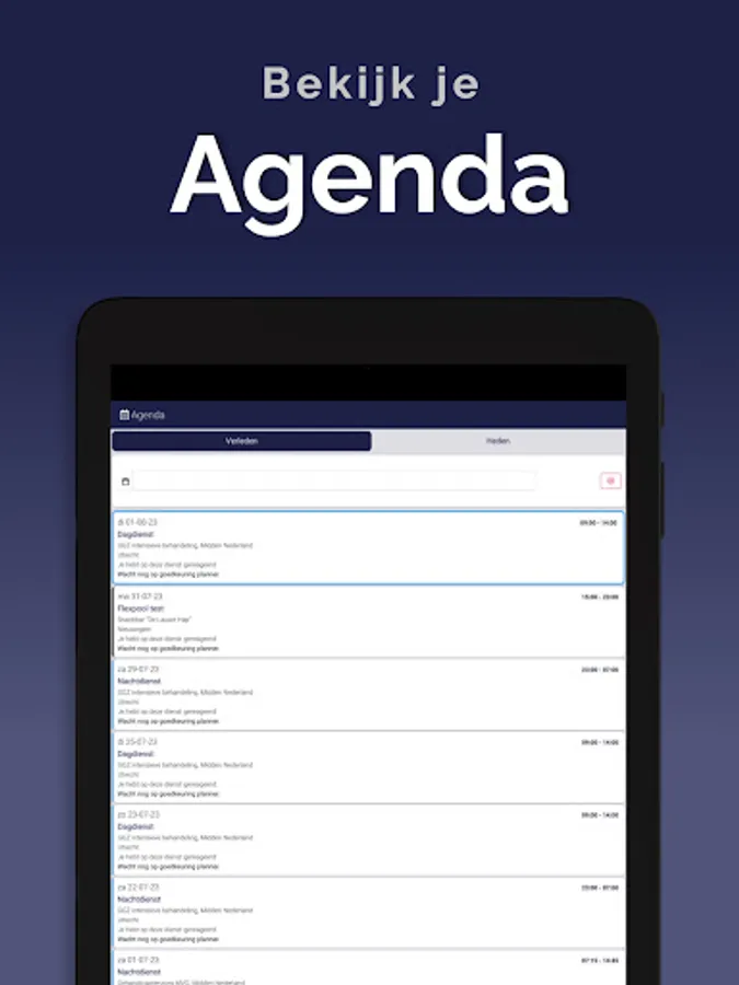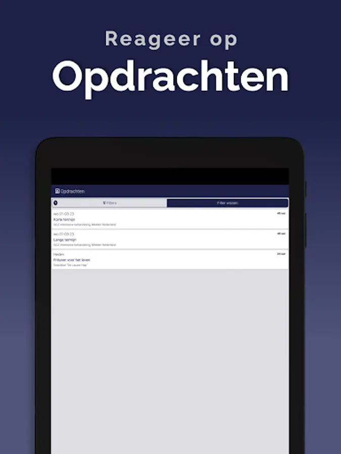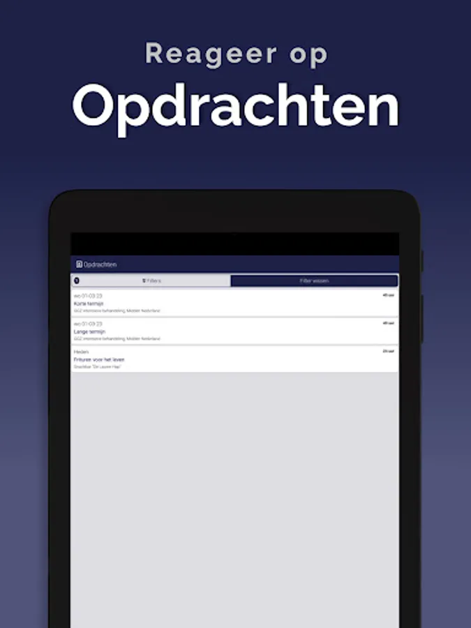 The App is linked to the system so that information is always up to date, via a clear dashboard. In addition, important notifications, such as newly available assignments, arrive on the device via a push notification. This way you won't overlook anything. Changes are also immediately visible, also in the agenda. So you are always in the right place.