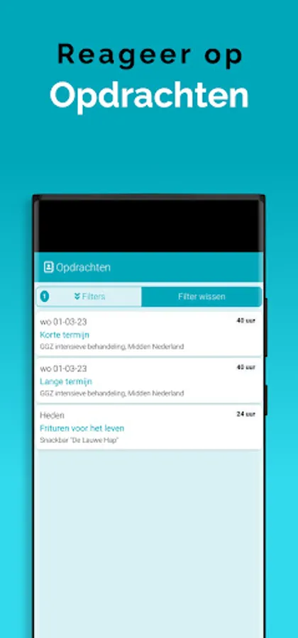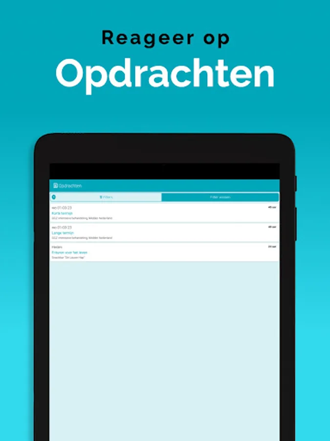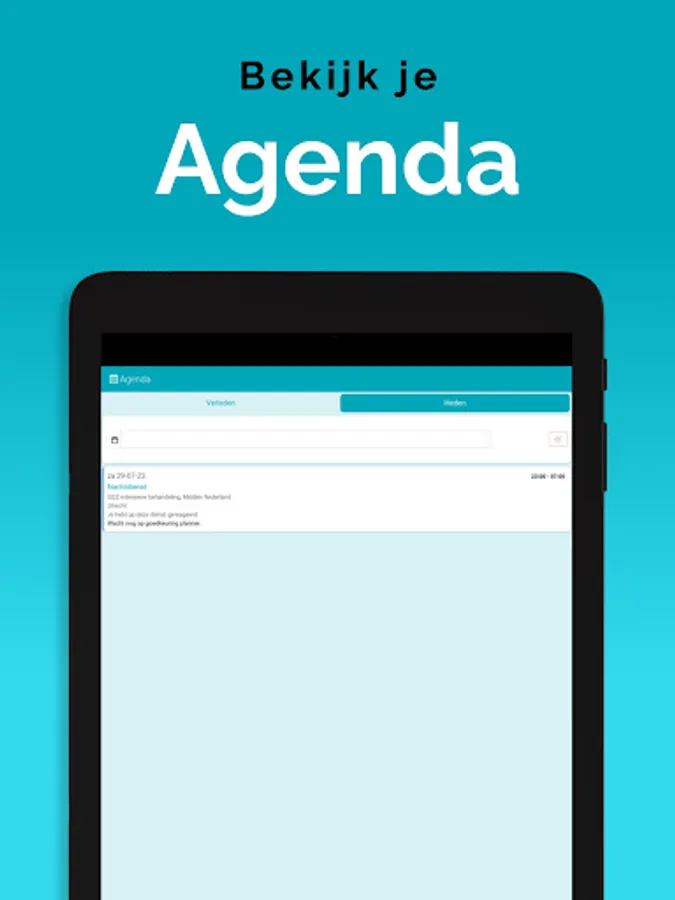The App is linked to the system, so that information is always up-to-date, via a clear dashboard. In addition, important notifications, such as newly available assignments, arrive on the device via a push notification. That way you don't overlook anything. Changes are also immediately visible, also in the agenda. So you are always in the right place.