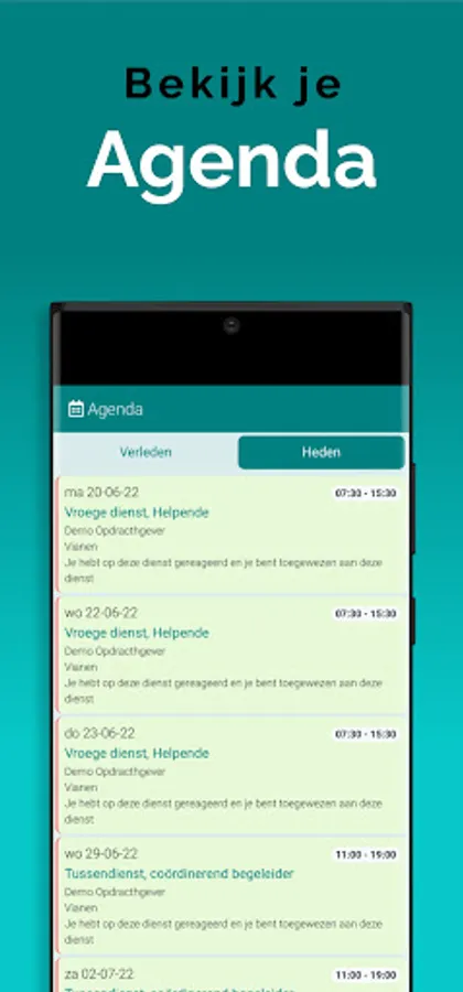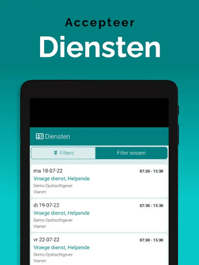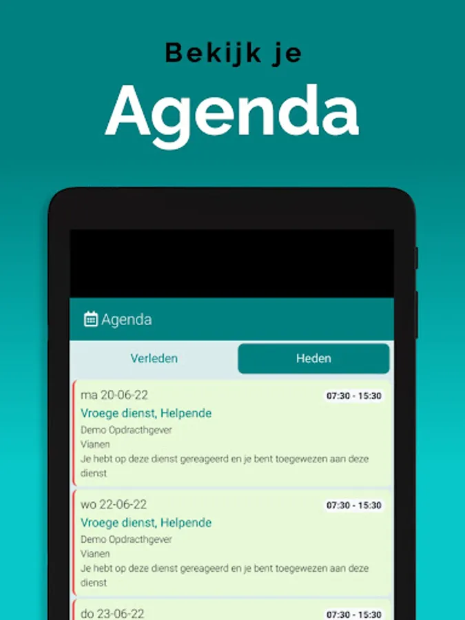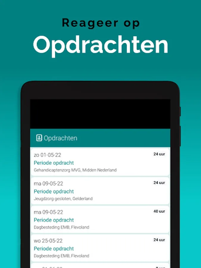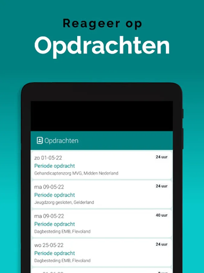 The App is linked to the system, so that information is always up-to-date, via a clear dashboard. In addition, important notifications, as newly available assignments, arrive on the device via a push notification. That way you don't overlook anything. Changes are also immediately visible, also in the agenda. So you are always in the right place.