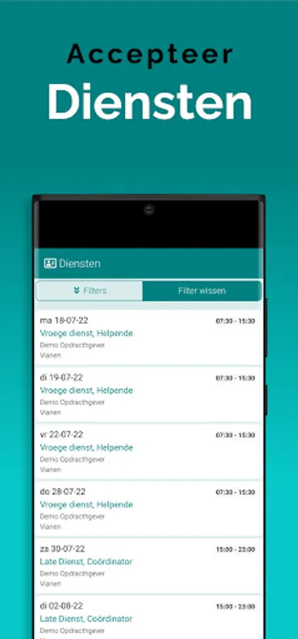 With this App, as a flex worker of Direct Talent Zorg, you can view and accept services and assignments, register hours worked, prepare and send invoices, view time sheets and view the agenda.