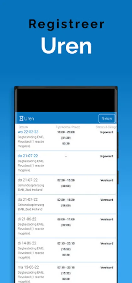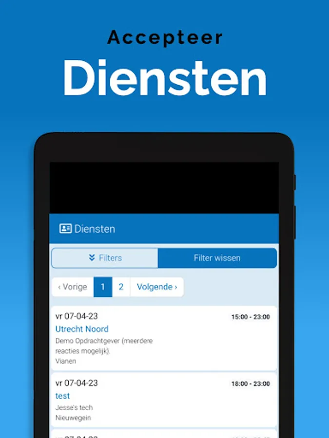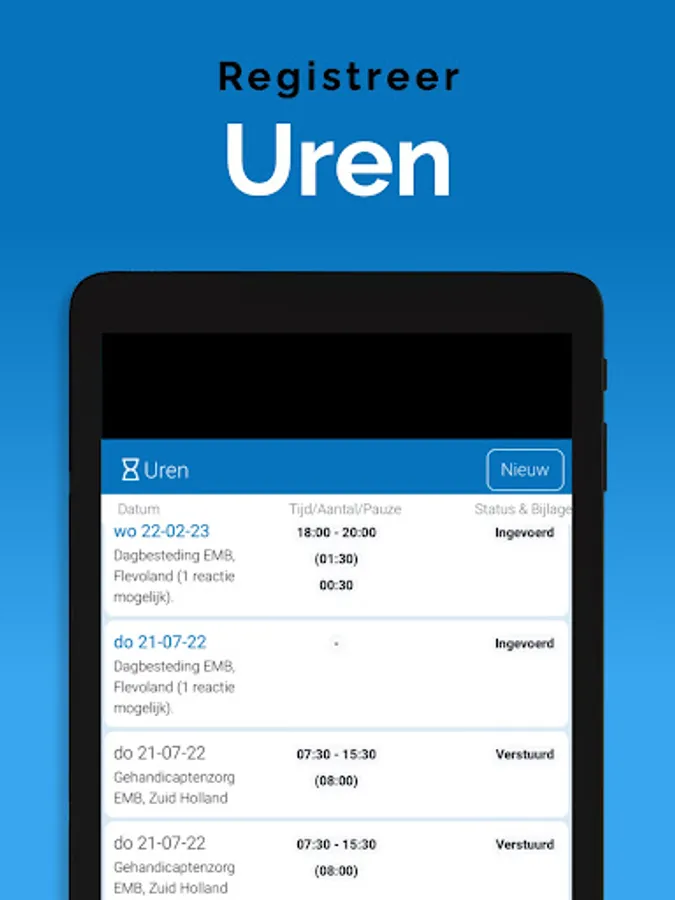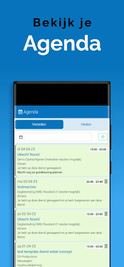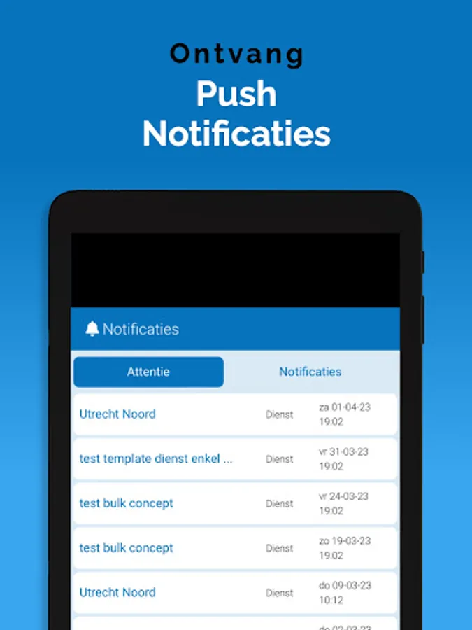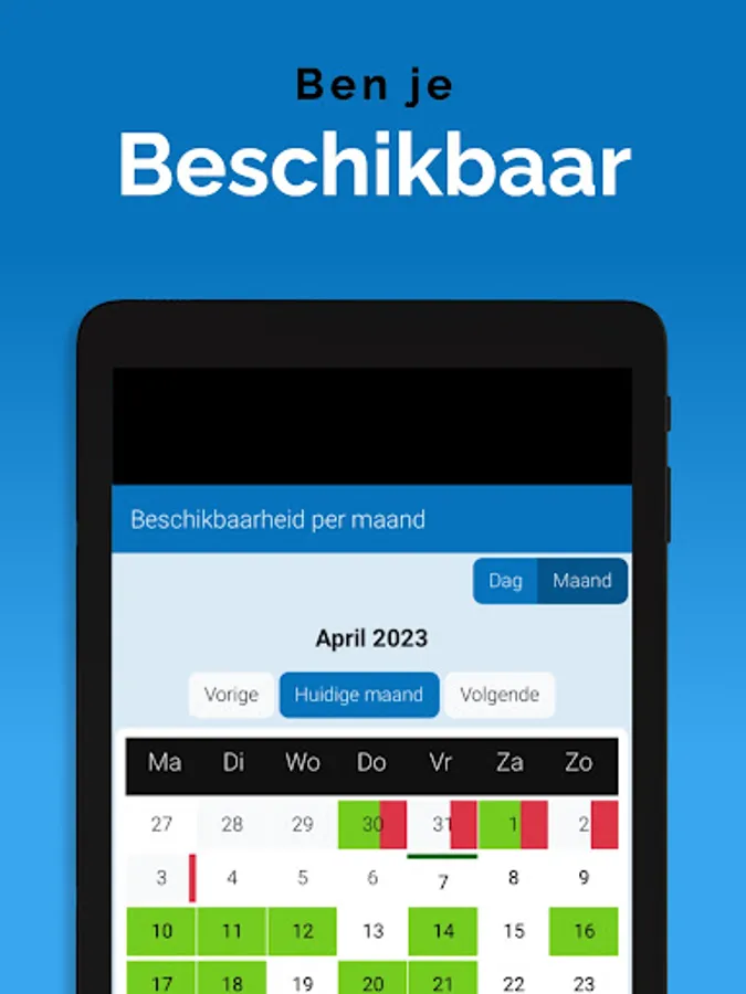 The App is linked to the system so that information is always up to date, via a clear dashboard. In addition, important notifications, such as newly available assignments, arrive on the device via a push notification. This way you won't overlook anything. Changes are also immediately visible, also in the agenda. So you are always in the right place.