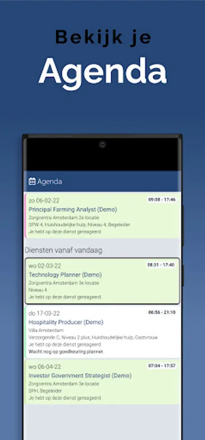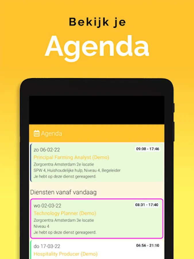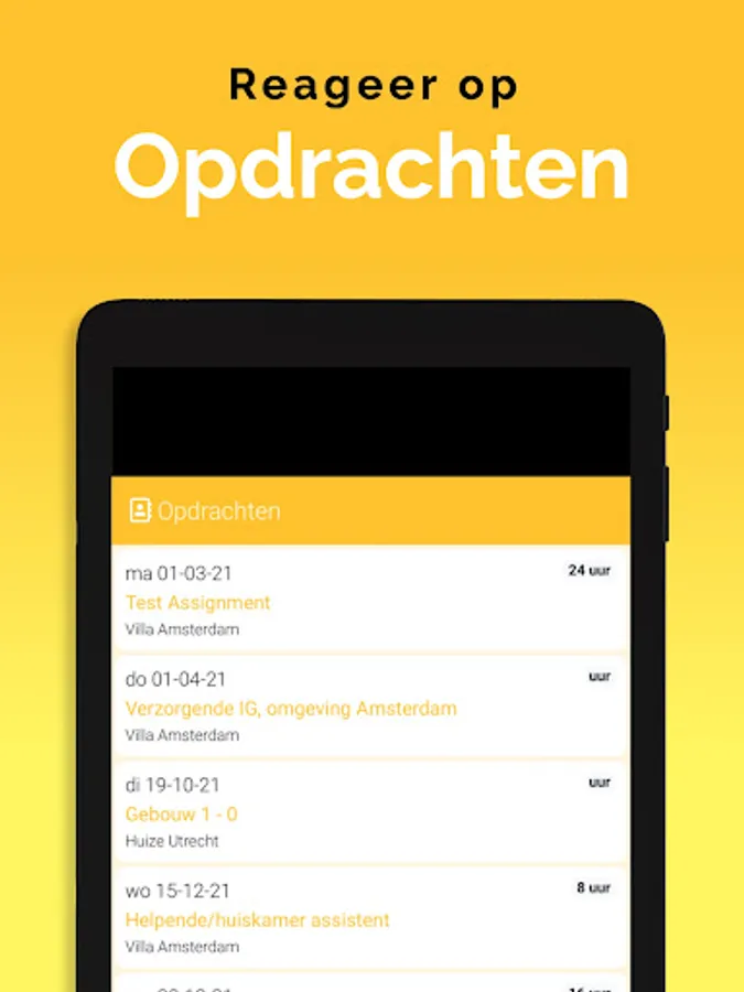 The App is linked to the system, so that information is always up-to-date, via a clear dashboard. In addition, important notifications, as newly available assignments, arrive on the device via a push notification. That way you don't overlook anything. Changes are also immediately visible, also in the agenda. So you are always in the right place.