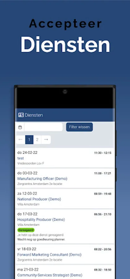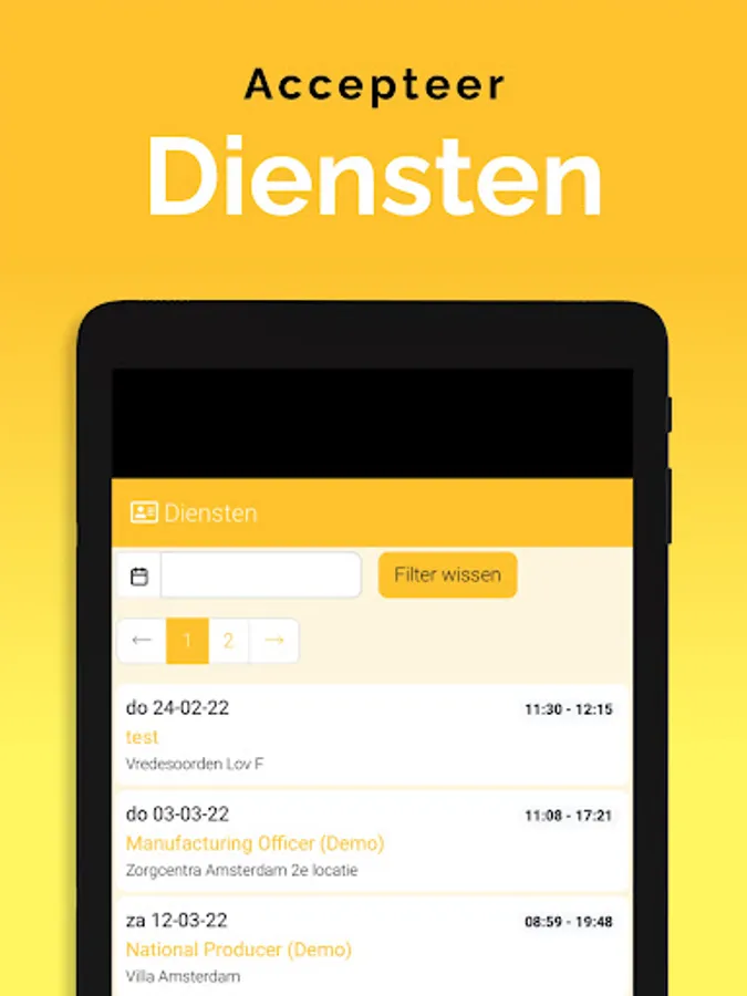 As a flex worker of MediVeld, you can use this App to view and accept services and assignments, register hours worked, prepare and send invoices, view time sheets and the agenda.