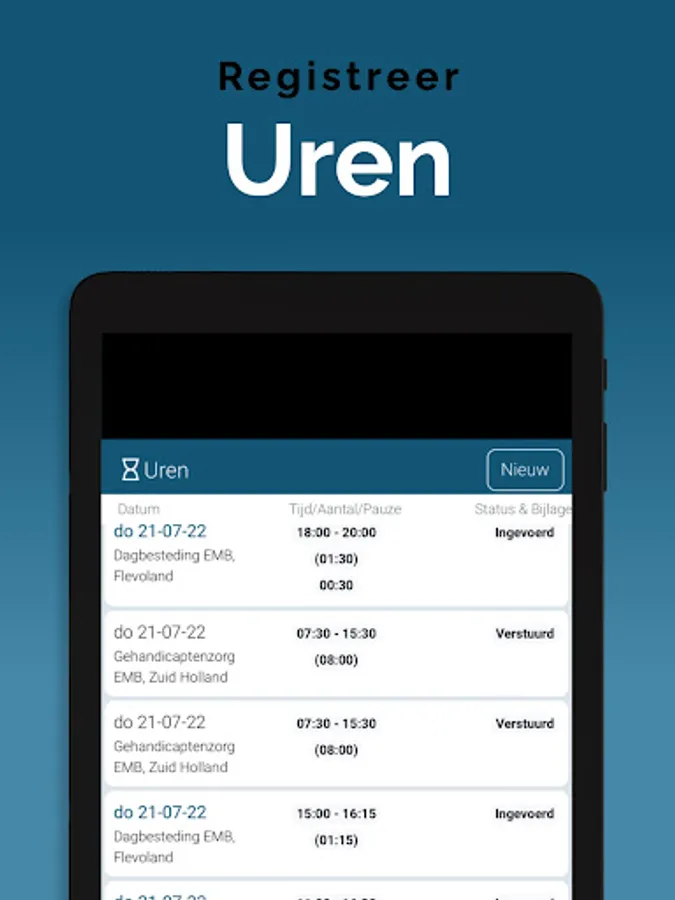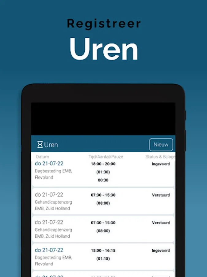 With this App you, as a flex worker of Nexus care professionals, can view and accept services and assignments, register hours worked, draw up and send invoices, view timesheets and the agenda.