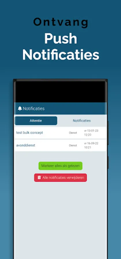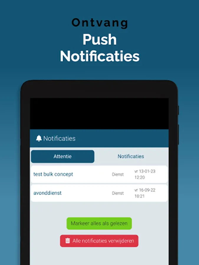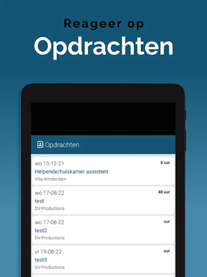 The App is linked to the system, so that information is always up-to-date, via a clear dashboard. In addition, important notifications, such as newly available assignments, arrive on the device via a push notification. That way you don't overlook anything. Changes are also immediately visible, also in the agenda. So you are always in the right place.