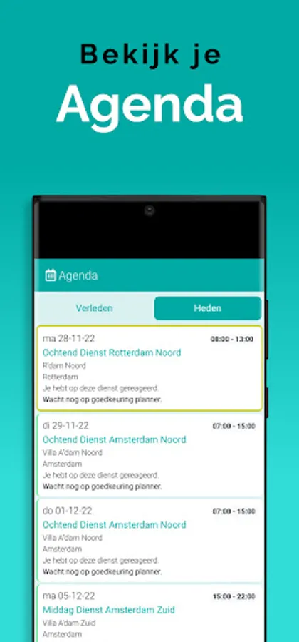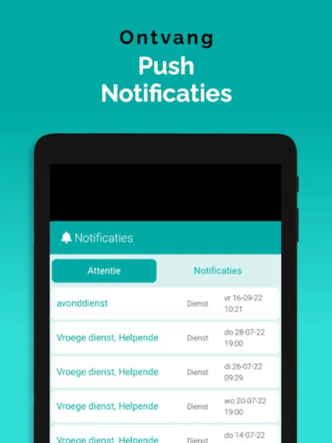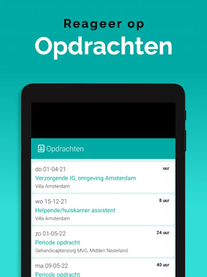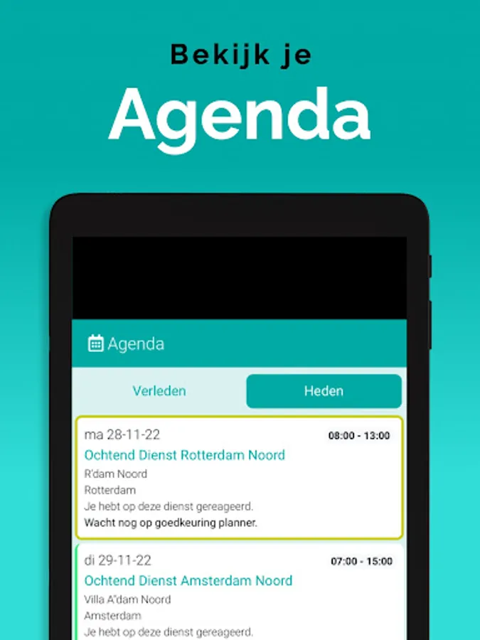 The App is linked to the system, so that information is always up-to-date, via a clear dashboard. In addition, important notifications, such as newly available assignments, arrive on the device via a push notification. That way you don't overlook anything. Changes are also immediately visible, also in the agenda. So you are always in the right place.