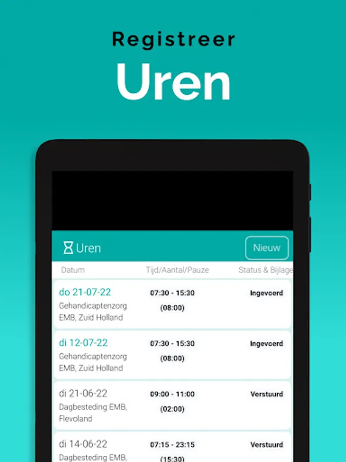 With this app, you as a flex worker can view & accept services and assignments, register hours worked, view invoices and manage your own agenda.
