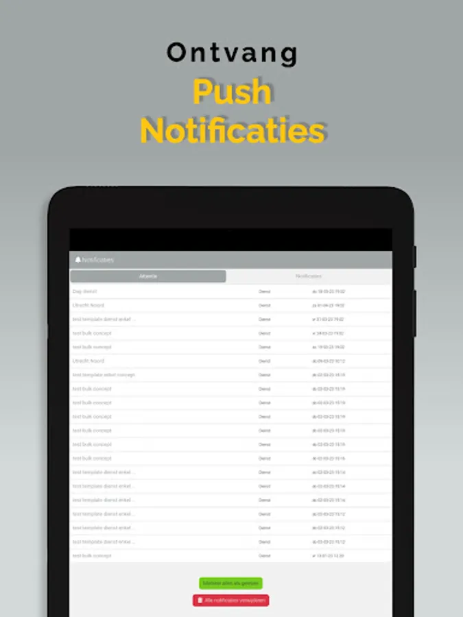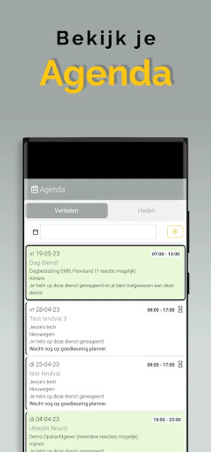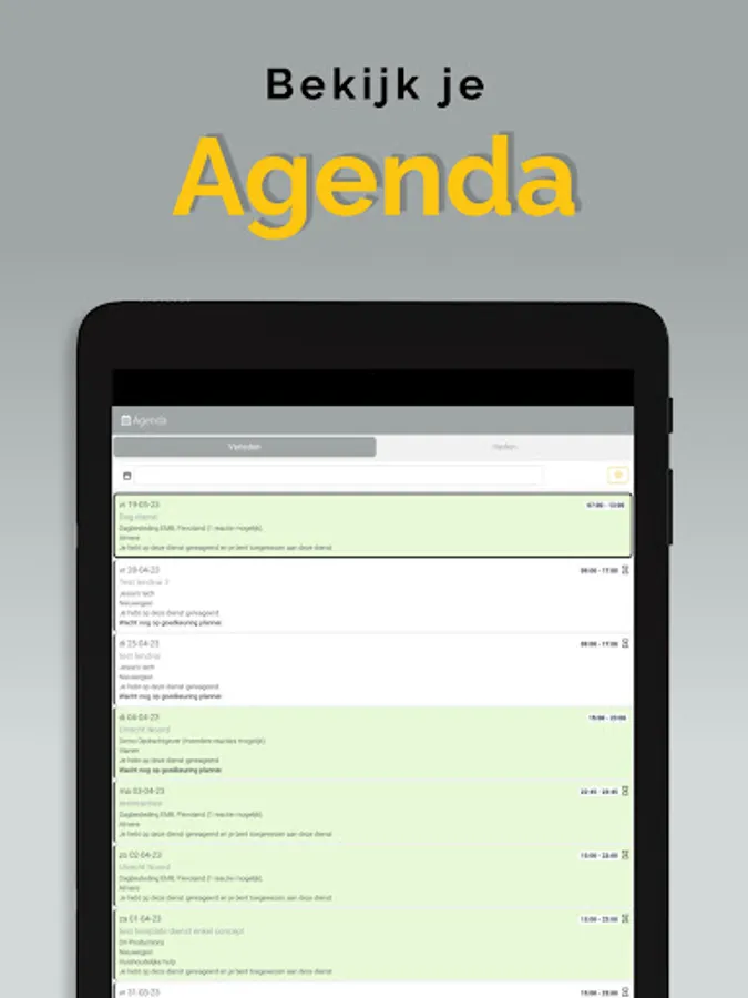 The App is linked to the system, so that information is always up-to-date, via a clear dashboard. In addition, important notifications, such as newly available assignments, arrive on the device via a push notification. That way you don't overlook anything. Changes are also immediately visible, also in the agenda. So you are always in the right place.