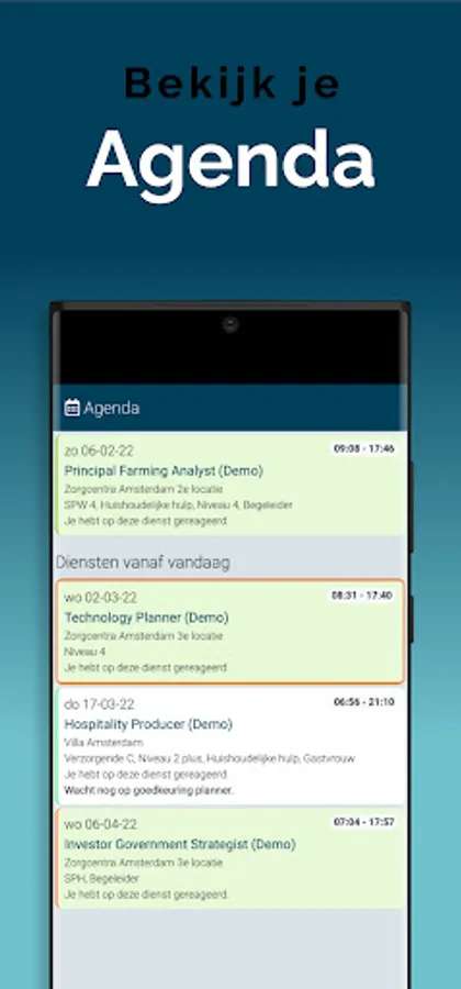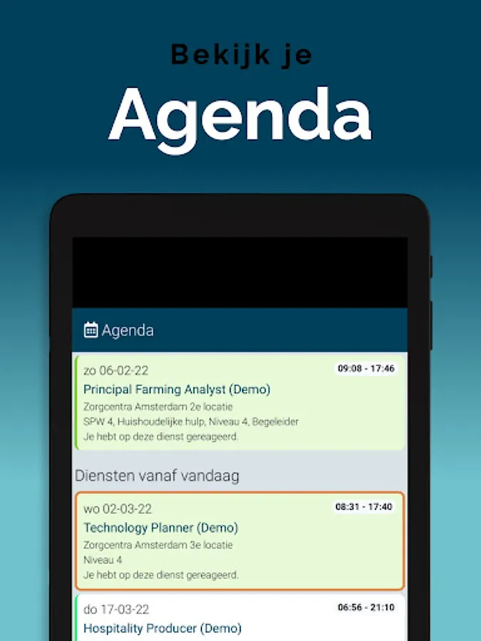 With this app you can view and accept shifts and assignments, view timesheets and the agenda.