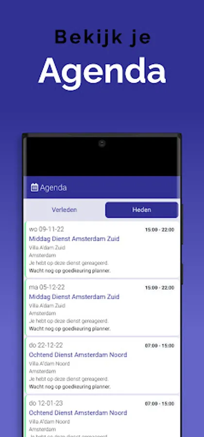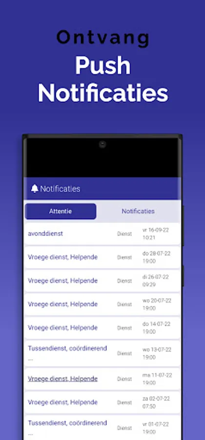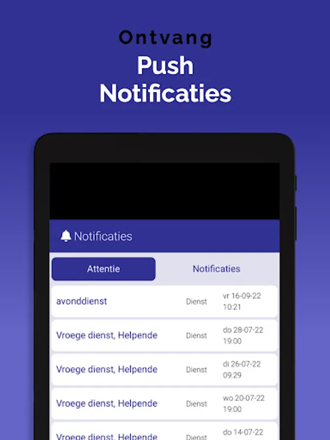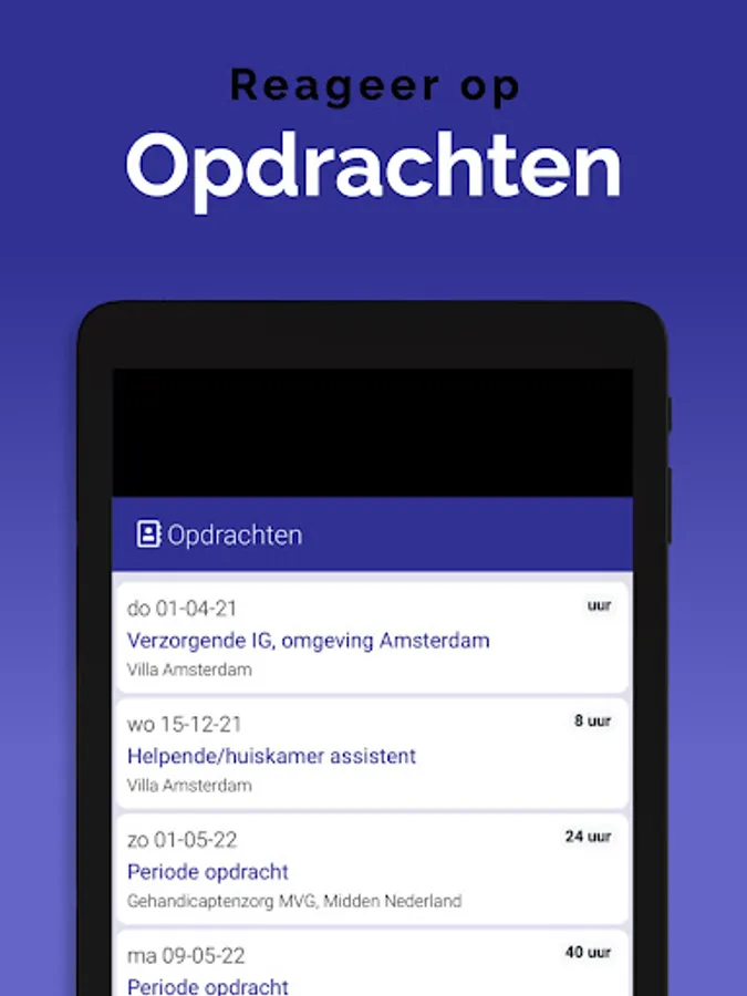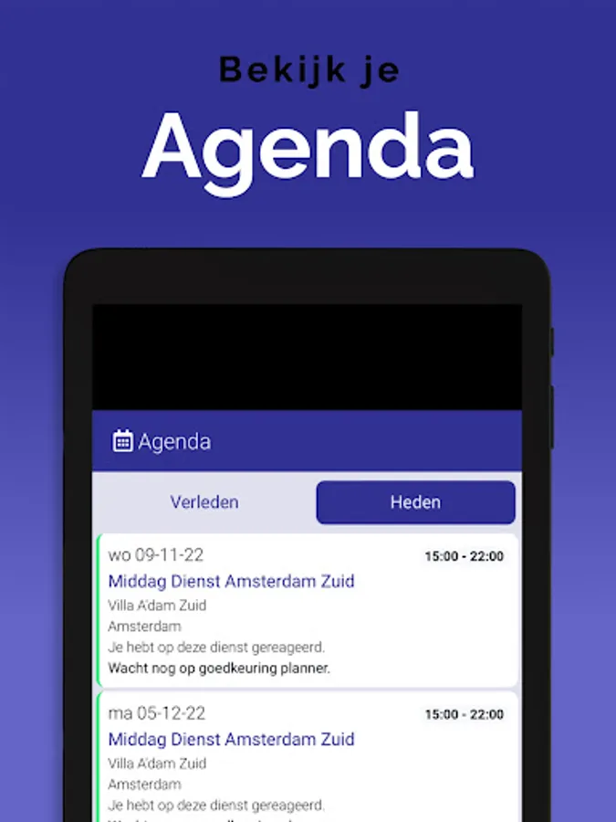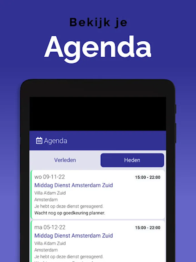 The App is linked to the system, so that information is always up-to-date, via a clear dashboard. In addition, important notifications, as newly available assignments, arrive on the device via a push notification. That way you don't overlook anything. Changes are also immediately visible, also in the agenda. So you are always in the right place.