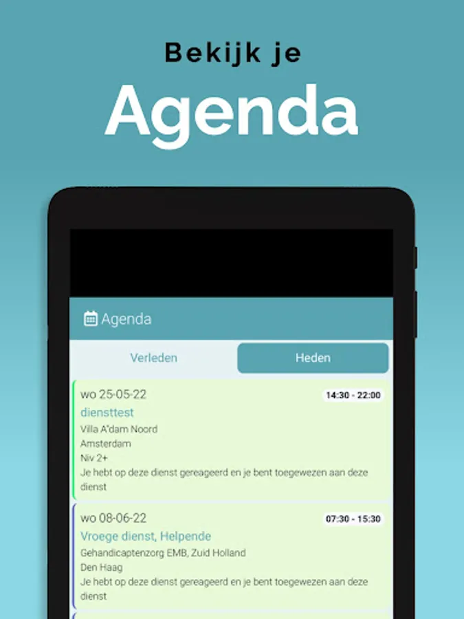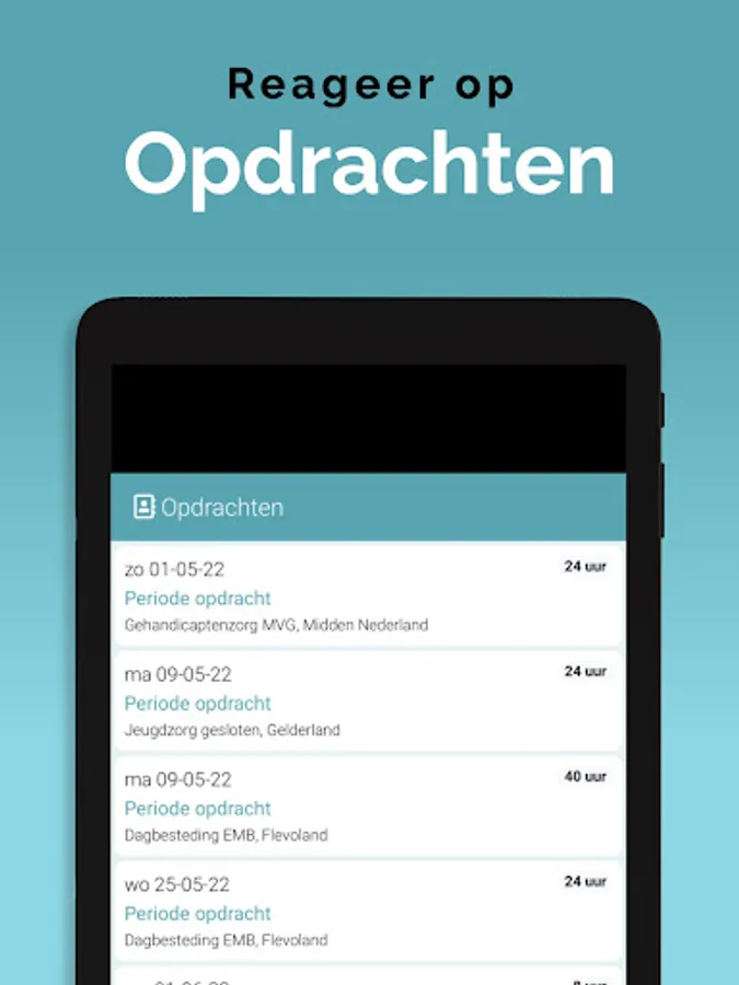The App is linked to the system, so that information is always up-to-date, via a clear dashboard. In addition, important notifications, as newly available assignments, arrive on the device via a push notification. That way you don't overlook anything. Changes are also immediately visible, also in the agenda. So you are always in the right place.