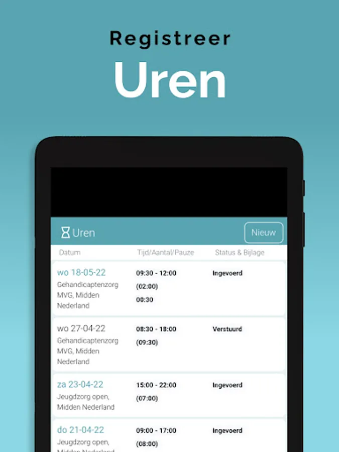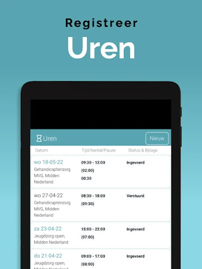With this App you as a flex worker of Uw Zorg Schakel can view and accept services and assignments, register hours worked, prepare and send invoices, view time sheets and the agenda.