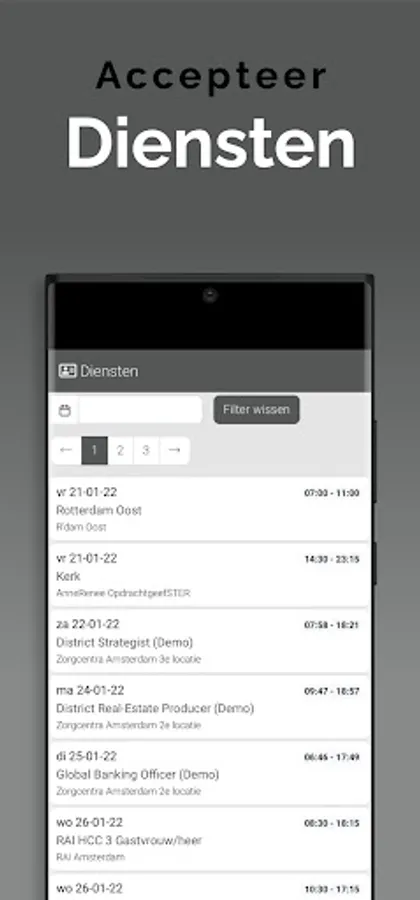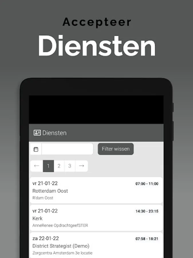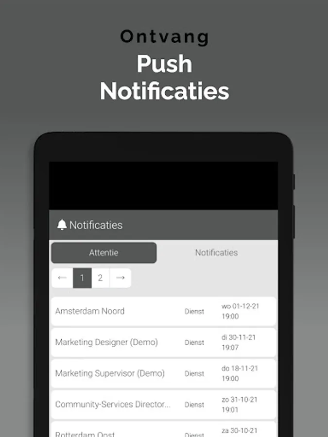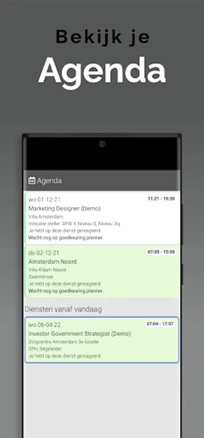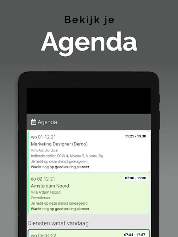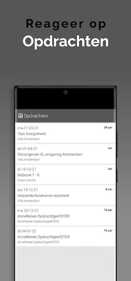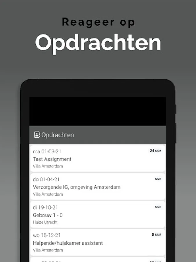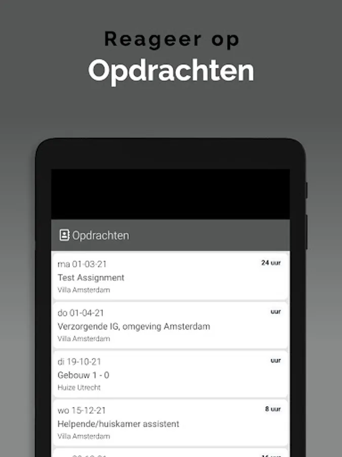 The App is linked to the system so that information is always up to date, via a clear dashboard. In addition, important notifications, such as newly available assignments, arrive on the device via a push notification. This way you won't overlook anything. Changes are also immediately visible, also in the agenda. So you are always in the right place.