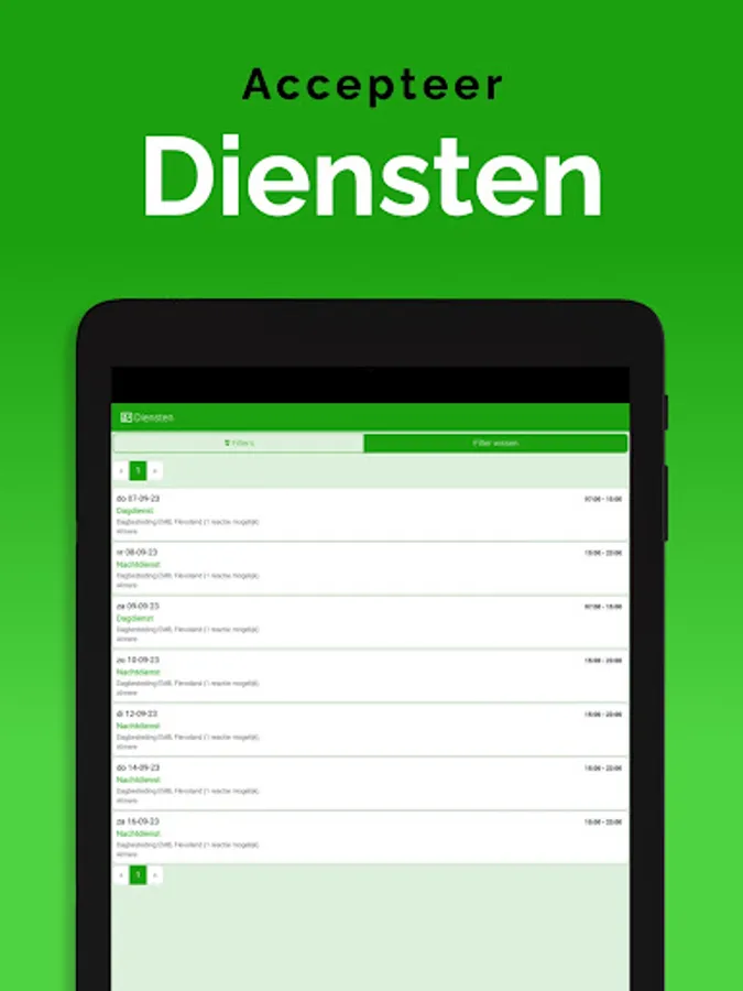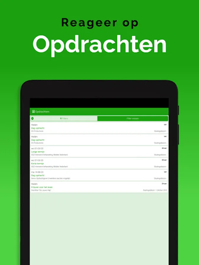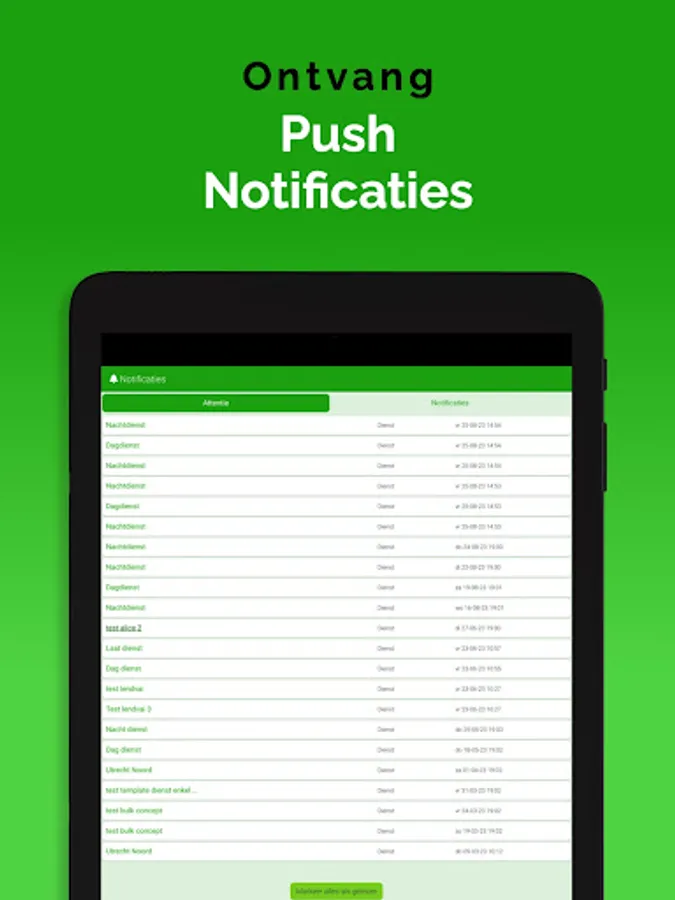 The App is linked to the system, so that information is always up-to-date, via a clear dashboard. In addition, important notifications, such as newly available assignments, arrive on the device via a push notification. That way you don't overlook anything. Changes are also immediately visible, also in the agenda. So you are always in the right place.