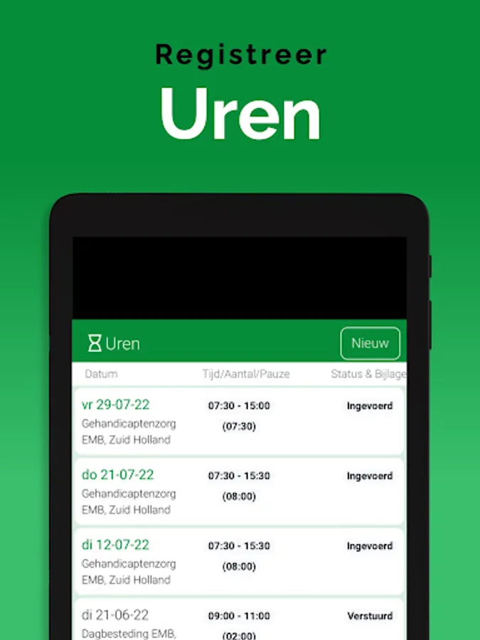 With this App you, as a flex worker of Intact Zorg, can view and accept services and assignments, register hours worked, draw up and send invoices, view timesheets and the agenda.