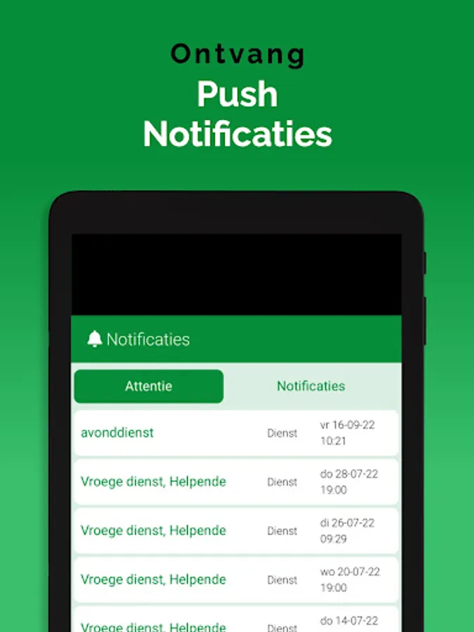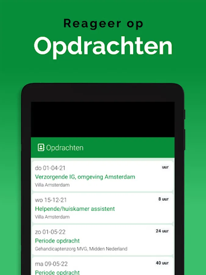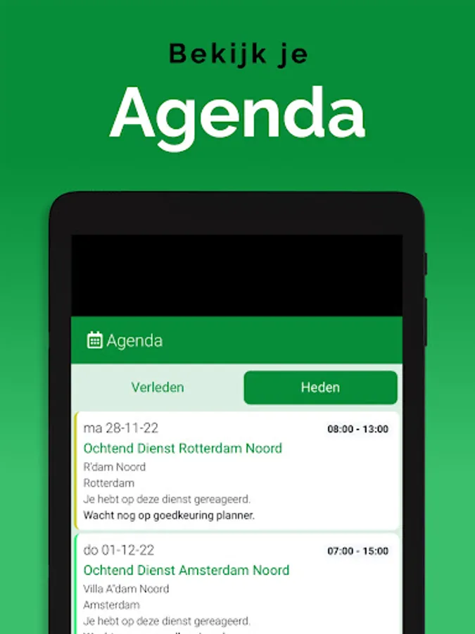 The App is linked to the system, so that information is always up-to-date, via a clear dashboard. In addition, important notifications, such as newly available assignments, arrive on the device via a push notification. That way you don't overlook anything. Changes are also immediately visible, also in the agenda. So you are always in the right place.