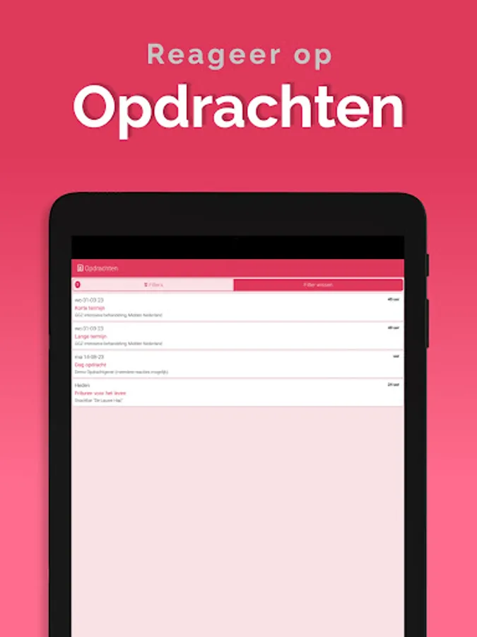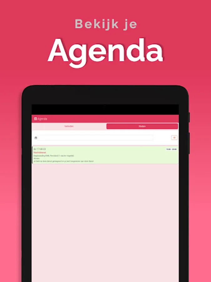 The App is linked to the system, so that information is always up-to-date, via a clear dashboard. In addition, important notifications, such as newly available assignments, arrive on the device via a push notification. That way you don't overlook anything. Changes are also immediately visible, also in the agenda. So you are always in the right place.