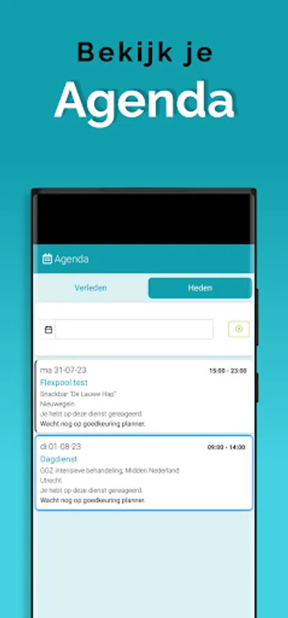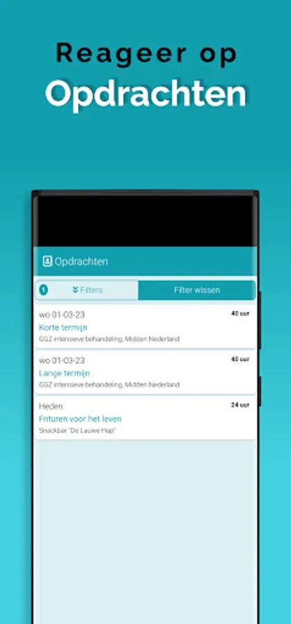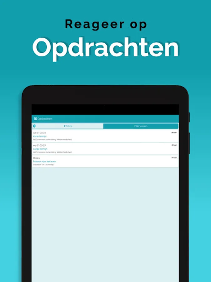 The App is linked to the system so that information is always up to date, via a clear dashboard. In addition, important notifications, such as newly available assignments, arrive on the device via a push notification. This way you won't overlook anything. Changes are also immediately visible, also in the agenda. So you are always in the right place.