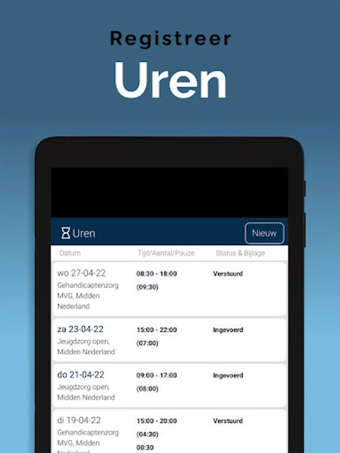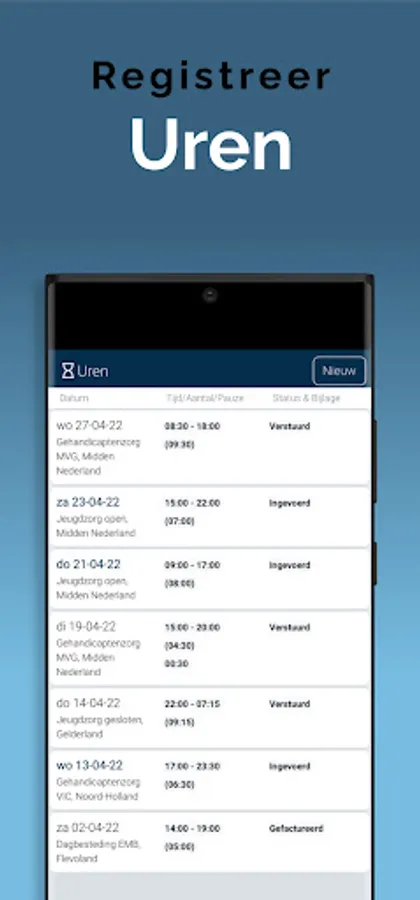 With this App you can, as a flexworker of Zorg voor Zorg, view and accept services and assignments, register hours worked, prepare and send invoices, view time sheets and the agenda. The App is linked to the system, so that information is always up-to-date, via a clear dashboard. In addition, important notifications, as newly available assignments, arrive on the device via a push notification. That way you don't overlook anything. Changes are also immediately visible, also in the agenda. So you are always in the right place. You can also contact Zorg voor Zorg directly via the Chat within this App. Ideal if you still have questions about something.